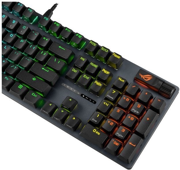 klávesnica, herná mechanická, USB kábel, CZ/SK - česká/slovenská, podsvietená, spínače ROG Snow, čiernaZobraziť viac