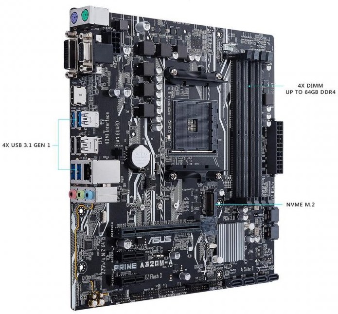 základná doska, AMD AM4, AMD A320, DDR4 (PC4), MicroATX, DVI, HDMI, VGA, PCI Express x16 3.0, SATA III, m.2 SATA , USB 2.0, USB 3.1, 5.1 analógZobraziť viac