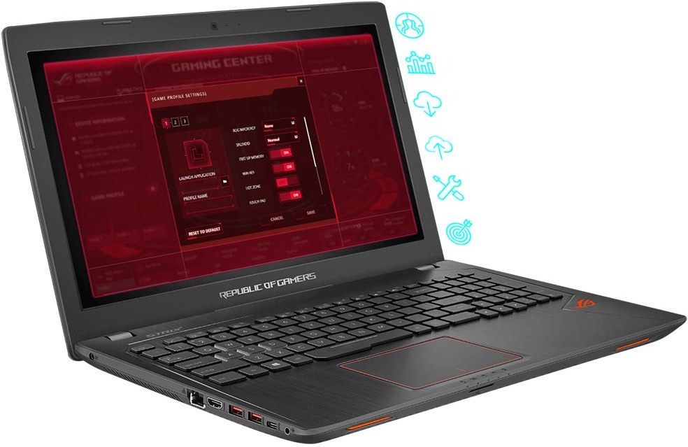 ROG Strix GL553 je vybavený 15,6-palcovým FullHD panelom so širokým pozorovacím uhlom. Panel zaisťuje vynikajúci kontrast a farebnú konzistenciu, čím nevykazuje žiadny farebný posun, aj keď ho sledujete z extrémnych uhlov. Má matný povrch, ktorý zabraňuje odrazu svetla v priebehu hry.ROG Gaming Center