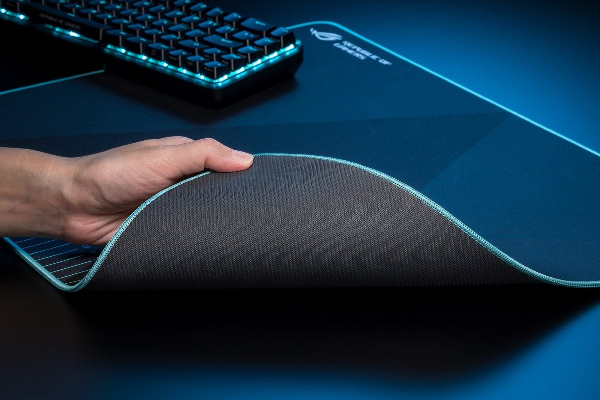 Konštrukcia podložky ROG Hone Ace je zameraná na dlhú životnosť a stabilitu. Základňa s hrúbkou 3 mm je vyrobená z protišmykovej gumy, ktorá pevne drží na stole aj počas najprudších pohybov v zápale boja. Okraje sú chránené kvalitným obšitím, ktoré zabraňuje strapkaniu a zvyšuje celkovú odolnosť produktu. Navyše, mäkký povrch poskytuje dostatočné pohodlie pre zápästie, čo oceníte najmä počas dlhých herných maratónov, kedy je komfort rovnako dôležitý ako samotný výkon.