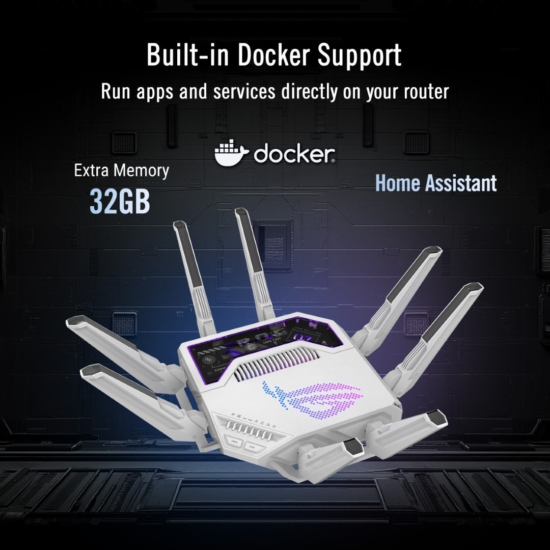 Vďaka integrovanej doske AI a natívnej podpore Docker® umožňuje ROG Rapture GT-BE19000AI používateľom spúšťať Home Assistant, Frigate a ďalšie platformy priamo na routeri, čím zabezpečuje plynulé ovládanie zariadení IoT rôznych značiek.
