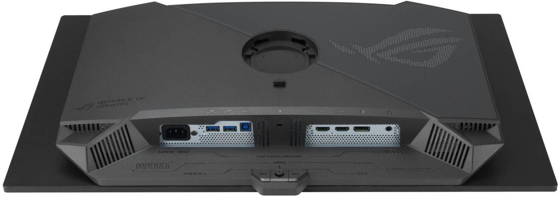 ROG Strix OLED XG27AQDPG má elegantný, futuristický dizajn s tenkým rámom a kompaktným stojanom, ktorý šetrí miesto na stole. Na vrchu monitora sa nachádza 1-palcový závit pre uchytenie kamery – ideálne pre streamerov. Konektivita zahŕňa 2× HDMI 2.1, DisplayPort 1.4, USB hub, no chýba USB-C, čo môže byť pre niektorých používateľov nevýhoda. Napriek tomu monitor ponúka ergonomické nastavenie výšky, náklonu aj otočenia.