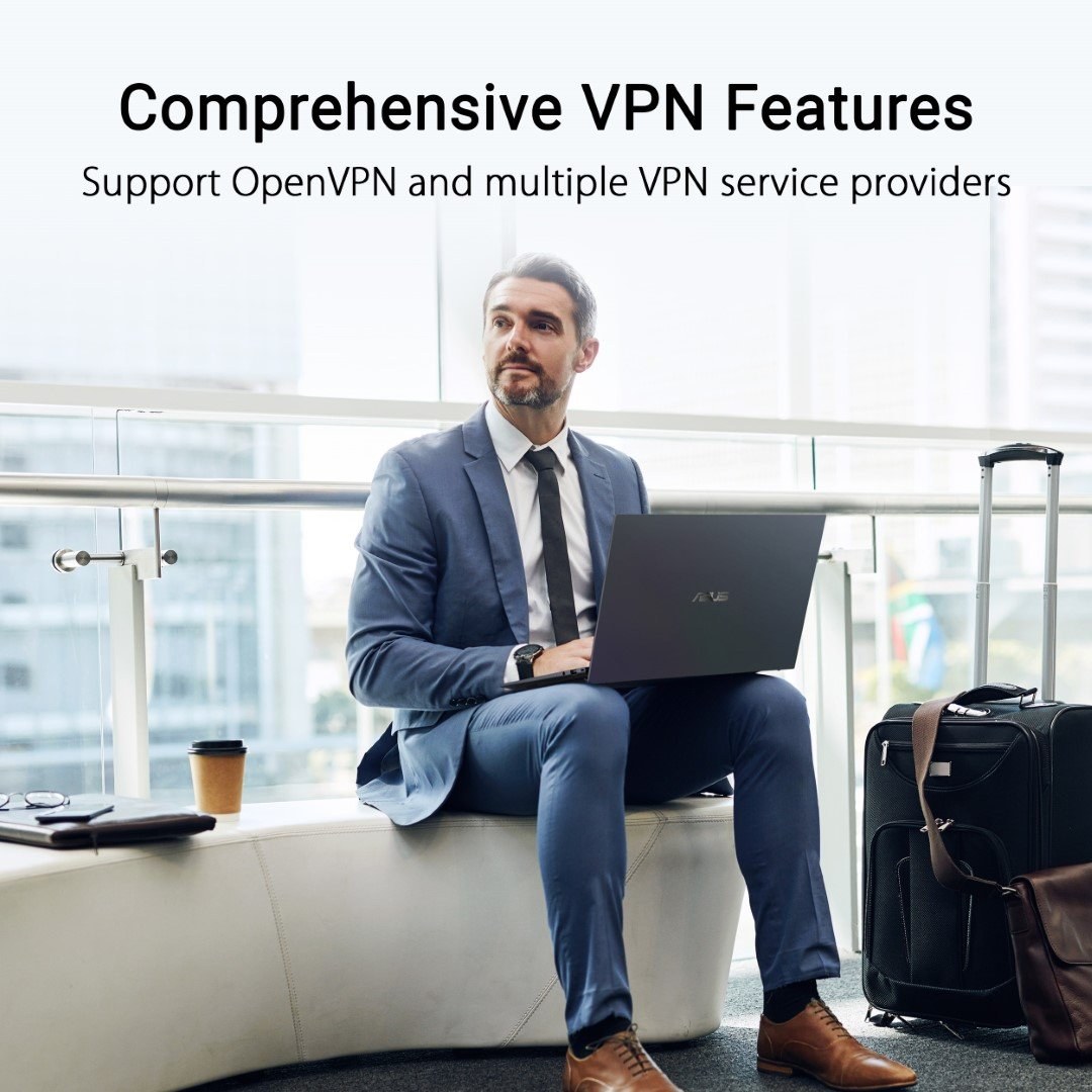 Zostaňte pripojení aj na cestách vďaka univerzálnym možnostiam pripojenia RT-AX50 Go a využívajte bezpečné WiFi a pohodlné VPN, nech vás cesta zavedie kamkoľvek!