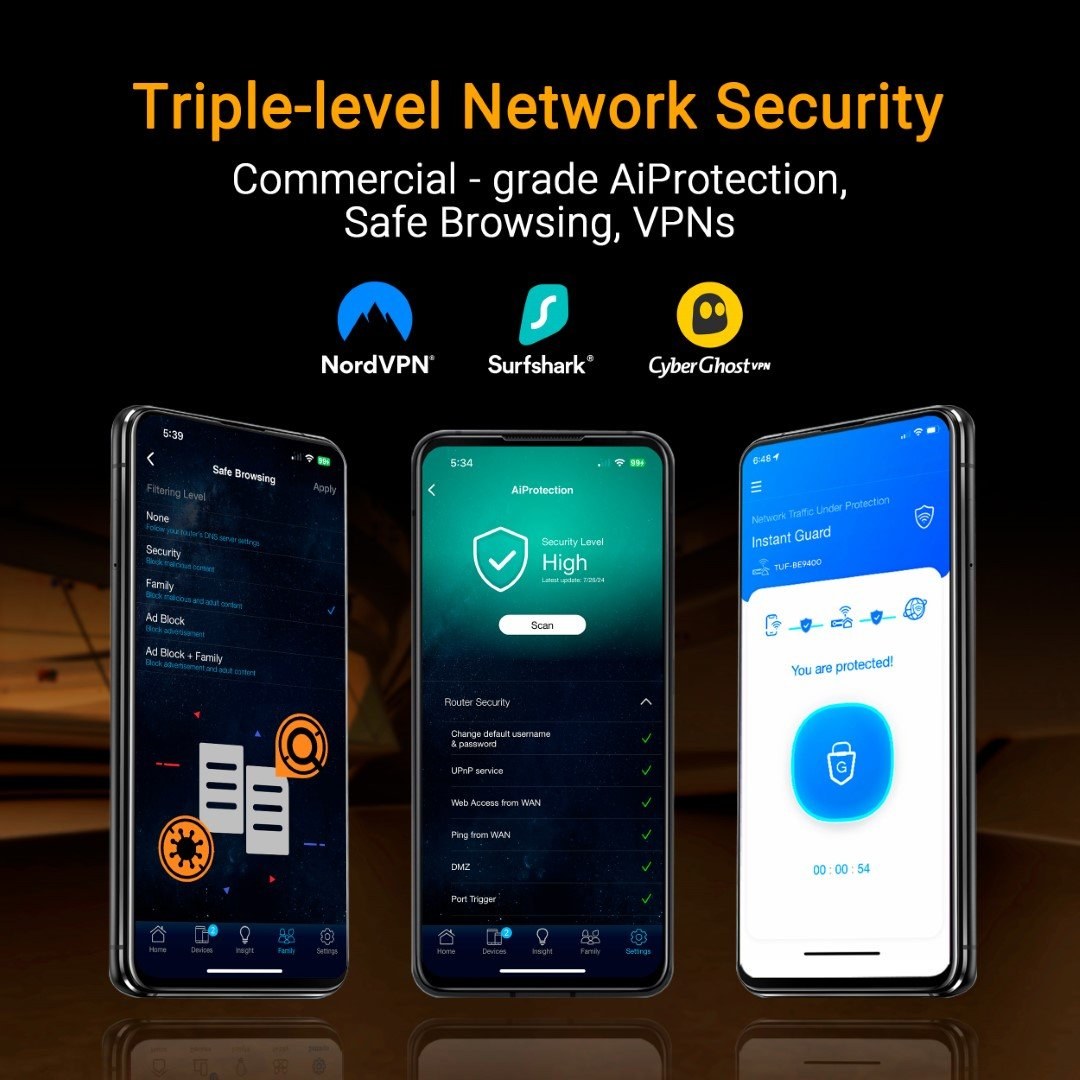TUF Gaming BE9400 kombinuje jednoduché nastavenie Open NAT pre rýchlu tímovú hru s režimom Mobile Game v mobilnej aplikácii ASUS Router, ktorý uprednostňuje mobilný herný prevádzku, poskytuje nižšiu latenciu a lepší zážitok z online hier.