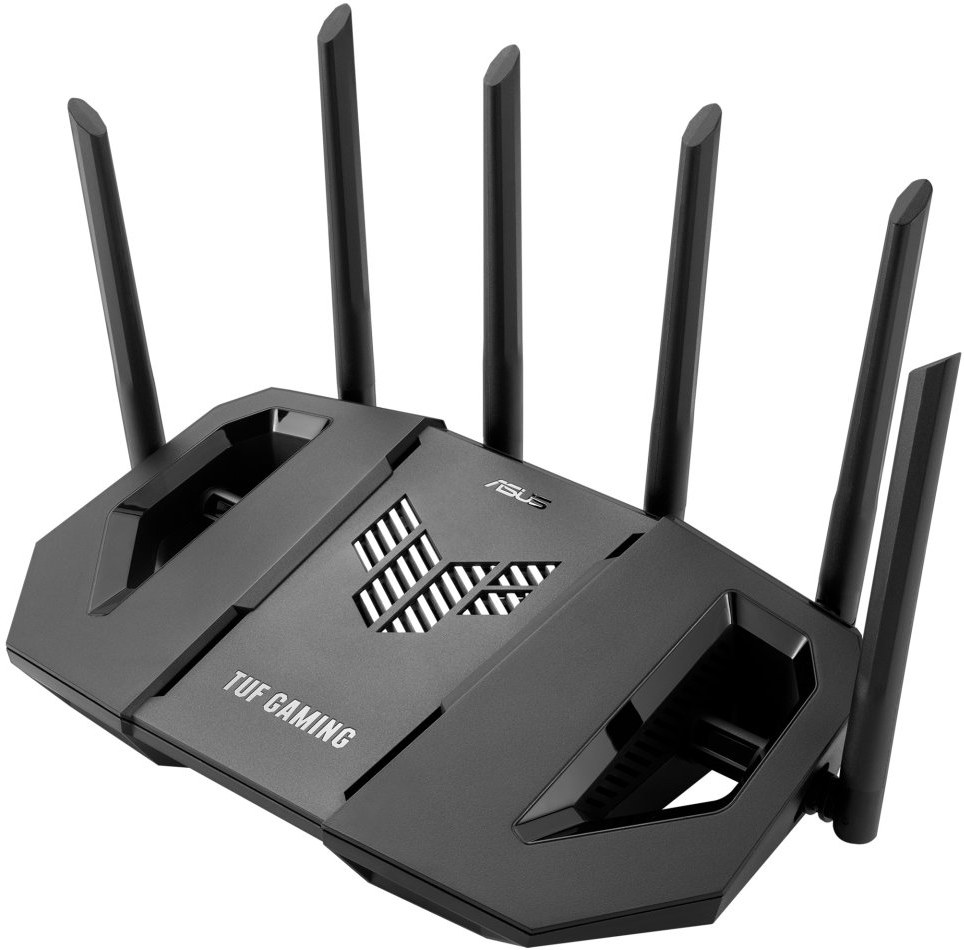 ASUS TUF Gaming BE9400 Tri Band WiFi 7 (802.11be) Rozšíriteľný herný router, štyri porty 2,5G, 3-krokové presmerovanie portov, Smart Home Master, podpora AiMesh a AiProtection pre sieťovú bezpečnosť.