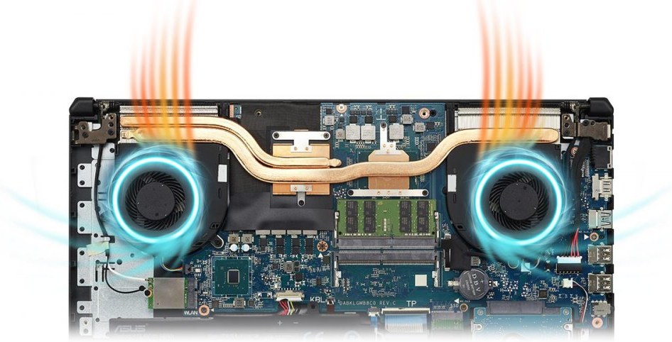 Architektúra chladenia modelu FX504 výrazne predlžuje jeho životnosť a poskytuje stabilný výkon pre náročné hry a prácu s grafikou. Technológia HyperCool kombinuje patentovaný samočistiaci systém ADC s prispôsobiteľnou funkciou Fan Overboost.Pár medených tepelných trubiek a systém s dvojitým ventilátorom chladí procesor a grafickú kartu nezávisle, zatiaľ čo dizajn šasi zvyšuje vďaka optimalizovanému prúdu vzduchu tepelnú účinnosť až o 27% oproti štandardným riešeniam. Ventilátor je umiestnený hneď pod skupinou klávesov WASD, aby aj vaša klávesnica zostala behom dlhých herných maratónov v pohode.