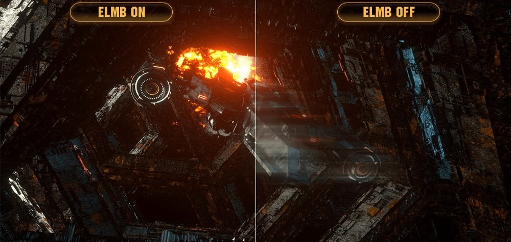 Extreme Low Motion Blur tzv. ELMB, činí objekty v pohybe ešte ostrejšie, takže hrateľnosť je ihneď plynulejší a citlivejší. Vďaka týmto aspektom budú akcie s rýchlym pohybom a dramatické prechody vykresľované plynulo bez obťažujúcich efektov zdvojeného obrazu.