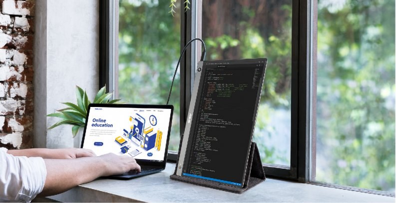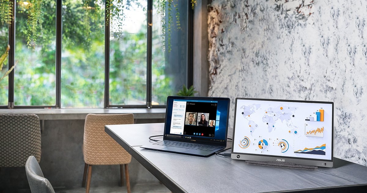 ZenScreen™ MB16AH je ideálny na použitie ako sekundárny monitor pre prezentácie s dvoma monitormi a jeho všestrannosť vám pomáha robiť veci efektívnejšie, keď ste na cestách. Sotva nakloní váhu na nízku hmotnosť 730 g a vďaka svojmu ultratenkému 9 mm profilu sa ľahko zmestí do každej cestovnej tašky.Tenký a štýlový ultraprenosný dizajn