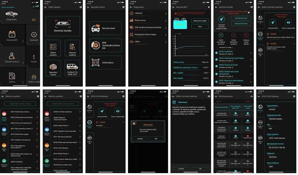 Autophix 3610 je bezdrôtová diagnostika OBDII cez Bluetooth pre vozidlá VW, Škoda, Seat, Audi, ktorá číta a vymazáva chybové kódy. Aplikácia na používanie diagnostiky je vhodná pre systémy Android a iOS a je kompletne preložená do českého jazykaPomocou diagnostiky AUTOPHIX 3610 máte prístup k riadiacej jednotke vozidla, modulu pohonu, modulu zavesenia kolies, modulu karosérie, elektronickému modulu vrátane motora, SAS, TPMS, airbagu, prevodovky, batérie, parkovacieho asistenta, imobilizéra, dodávky paliva, kontroly podvozku, stabilizátorov, parkovacej brzdy , aktívneho riadenia, funkcie prívesu atď.