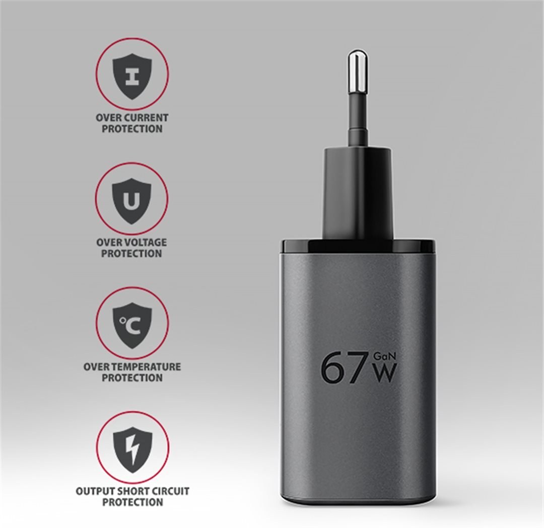 Kompaktná veľkosť a vysoký výkon je daný využitím novej GaN technológie. Použité súčiastky s Nitridom Galia pracujú s vysokou účinnosťou, čo umožňuje dosahovať vysoké výkony pri malej veľkosti. Nabíjačka je vybavená výstupom Power Delivery 3.0/Quick Charge 4+ USB typu C a Quick Charge 3.0 USB typu A, vďaka čomu umožňuje rýchle nabíjanie nielen smartfónov a tabletov, ale aj notebookov.