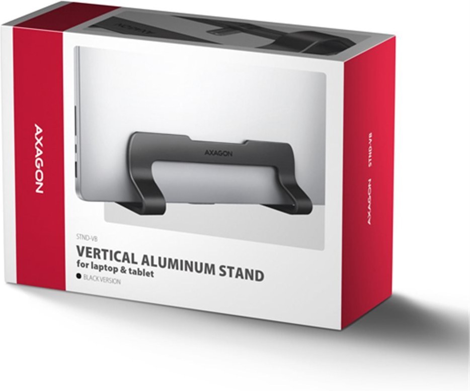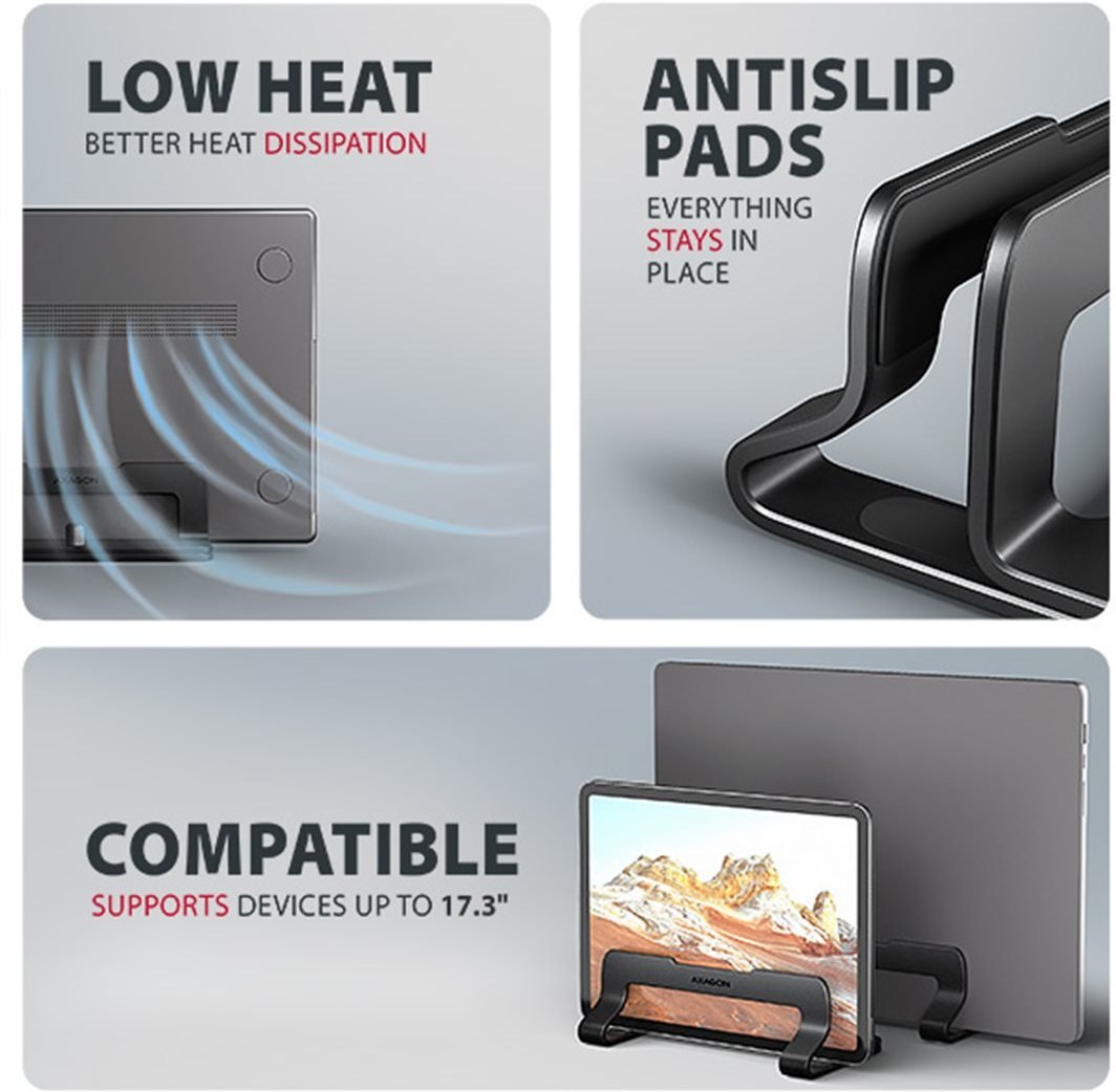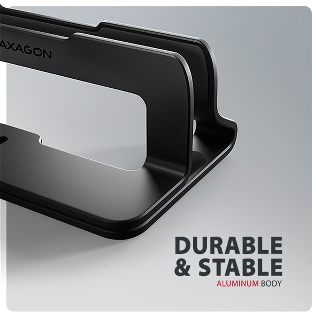 Axagon STND-VB, vertikálny hliníkový stojan pre notebooky 10"-17.3, čierny