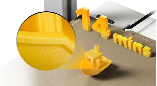 Plne kovové koľajnice, pevný rám, snímač tlaku v tryske, akcelerometre, výkonný mikrokontrolér a predovšetkým pokročilý systém riadenia pohybu – to všetko umožňuje tlačiarni A1 vytlačiť 14-minútové Benchy vo vysokej kvalite, v súlade so všetkými pravidlami pre „speed Benchy“, a to hneď po vybalení – bez potreby špeciálnych filamentov.