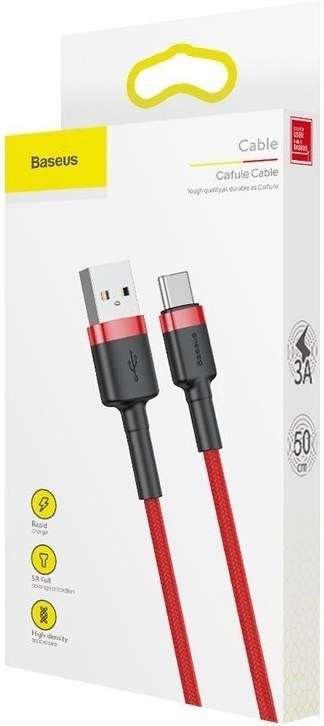 Baseus Cafule je vysokokvalitný kábel USB typu C určený na prenos dát a nabíjanie zariadení.Zosilnená konštrukcia zabezpečuje zvýšenú odolnosť proti pretrhnutiu (dodatočná ochrana na kábli pri zástrčke a hrubší opletený návlek dostupný len vo verzii Cafule). Okrem toho boli v konštrukcii použité materiály zosilňujúce štruktúru zástrčiek (napr. hliník).