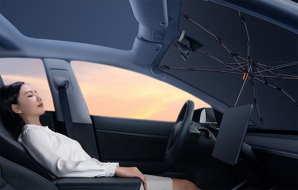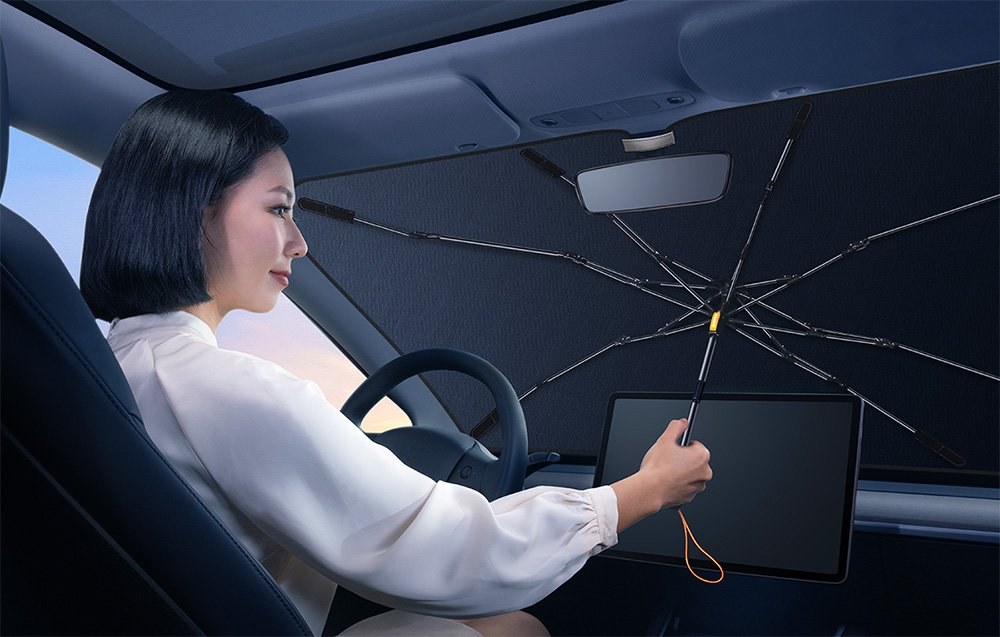 Baseus CoolRide účinne blokuje UV žiarenie, čím poskytuje ochranu interiéru vášho vozidla. Vďaka použitiu oxidu titaničitého dáždnik účinne odráža škodlivé slnečné lúče. Okrem toho špeciálna povrchová úprava umožňuje znížiť teplotu vo vnútri vozidla o 30 °C, čím účinne znižuje vedenie tepla a poskytuje príjemne chladné podmienky. Užite si pohodlnú cestu bez obáv z vysokých teplôt v aute.