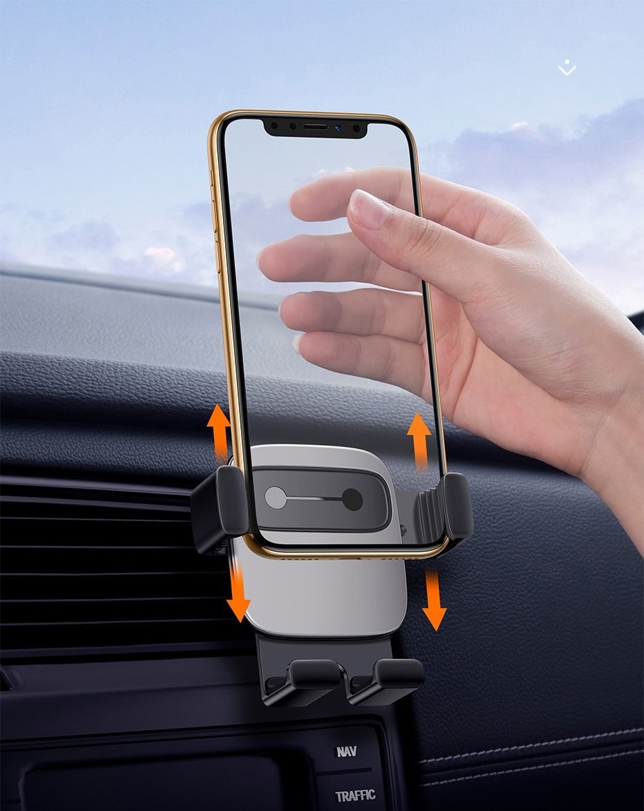 Mimoriadne ľahko použiteľný gravitačný držiak Baseus, ktorý sa dá namontovať na ventilačnú mriežku jednou rukou. Stačí doň vložiť telefón a čeľuste automaticky upnú váš smartfón. Poskytuje stabilitu a pevné uchopenie aj v náročných podmienkach.