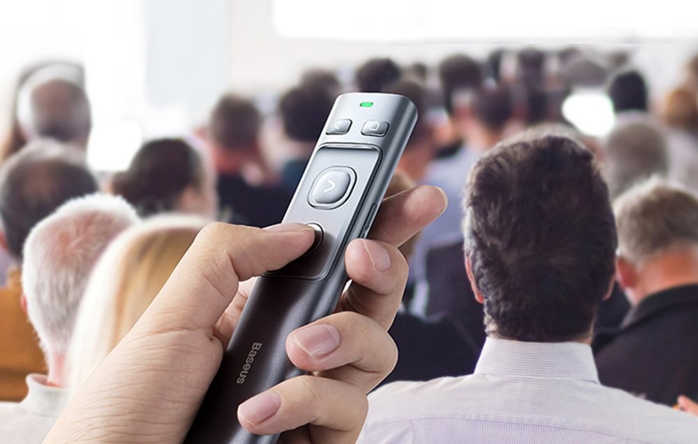 Chcete upozorniť publikum na niečo dôležité? Alebo vám možno záleží na tom, aby ste publiku ukázali konkrétny bod na diapozitíve? Žiadny problém! Diaľkové ovládanie Baseus je vybavené laserovým ukazovadlom s dosahom až 200 metrov. Teraz môžete ľahko upozorniť ostatných účastníkov konferencie na najdôležitejšie prvky vašej prezentácie a vysvetliť všetky záležitosti.