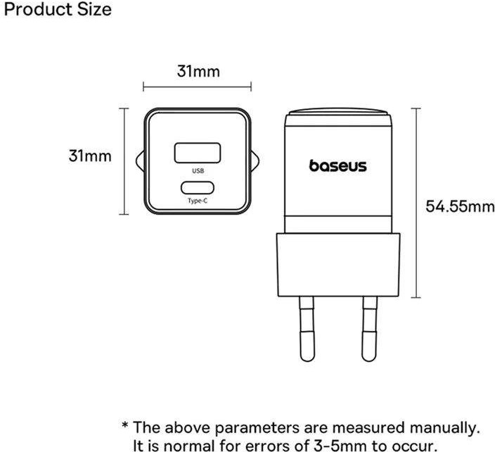 Baseus Palm rýchlo nabíjačka 30W, 1xUSB-A, 1xUSB-C, biela