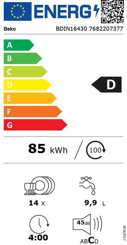 vstavaná umývačka riadu, energetická trieda (A-G): D, hlučnosť 45 dB, spotreba vody 9,9 l na cyklus ECO, kapacita pre 14 súprav riadu, intenzívny program, kôš pre príbor, odložený štart, AquaStopZobraziť viac