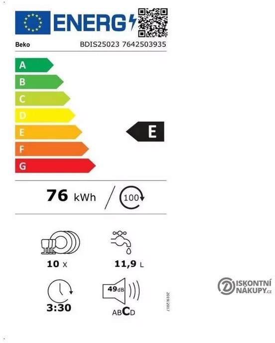 vstavaná umývačka riadu š.45cm, energetická trieda (A-G): E, hlučnosť 49 dB, spotreba vody 10,5 l na cyklus ECO, kapacita pre 10 súprav riadu, intenzívny program, kôš pre príbor, odložený štart, AquaStopZobraziť viac