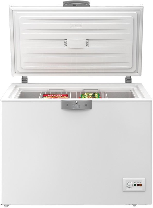 truhlicová ****, indikátor zapnutia, nastaviteľné nožičky, R600a, drôtené košíky, uzamykateľné veko, osvetlenie vnútra, 4 kolieska, invertorový kompresorwww.beko-hausgeraete.de/kuehlen-gefrieren/gefriergeraete/hs-22340
