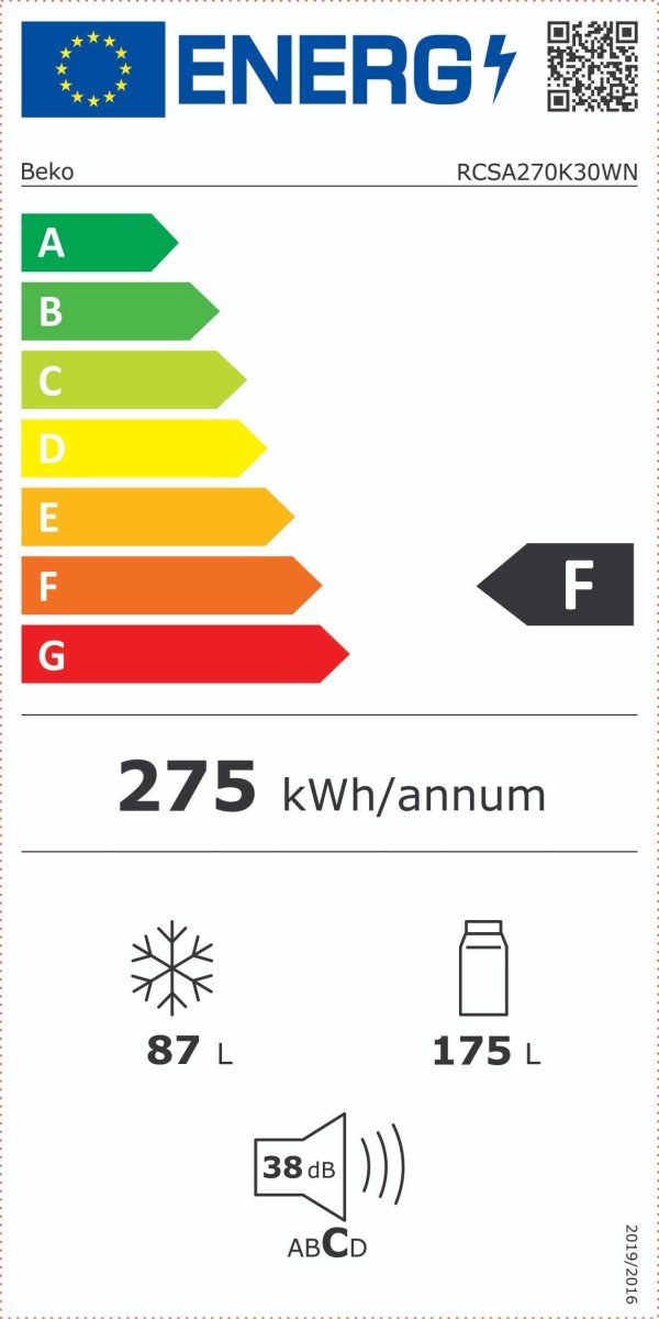 chladnička viacdverová kombinovaná, energetická trieda (A-G): F, farba biela, objem 270 l, objem mrazničky 87 l, hlučnosť 38 dB, klimatická trieda SN - ST (10 - 38°C), mraziaci výkon 4 kg za deňZobraziť viac