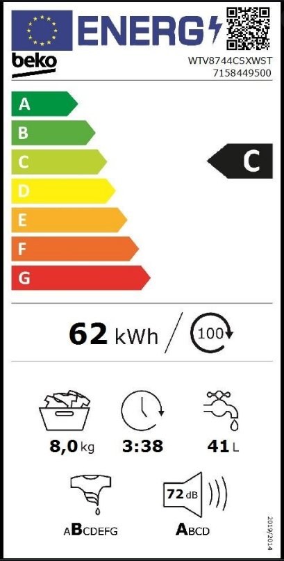 Beko WTV 8744 CSXWST, práčka predom plnená