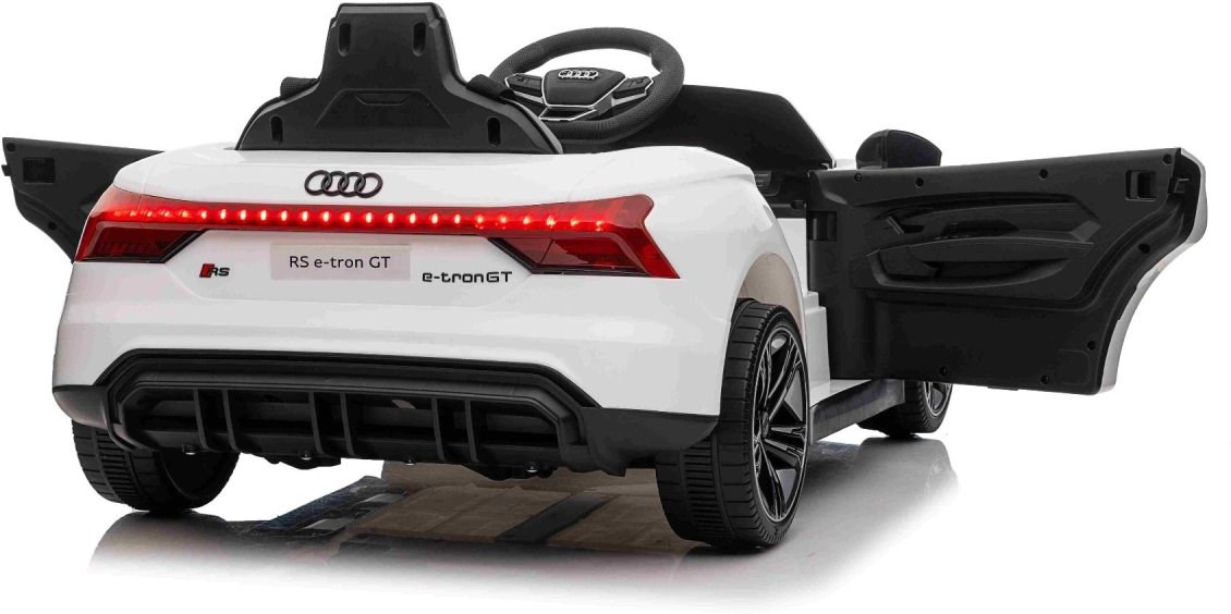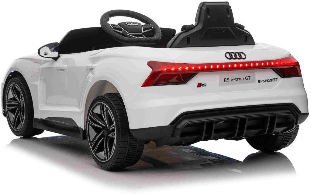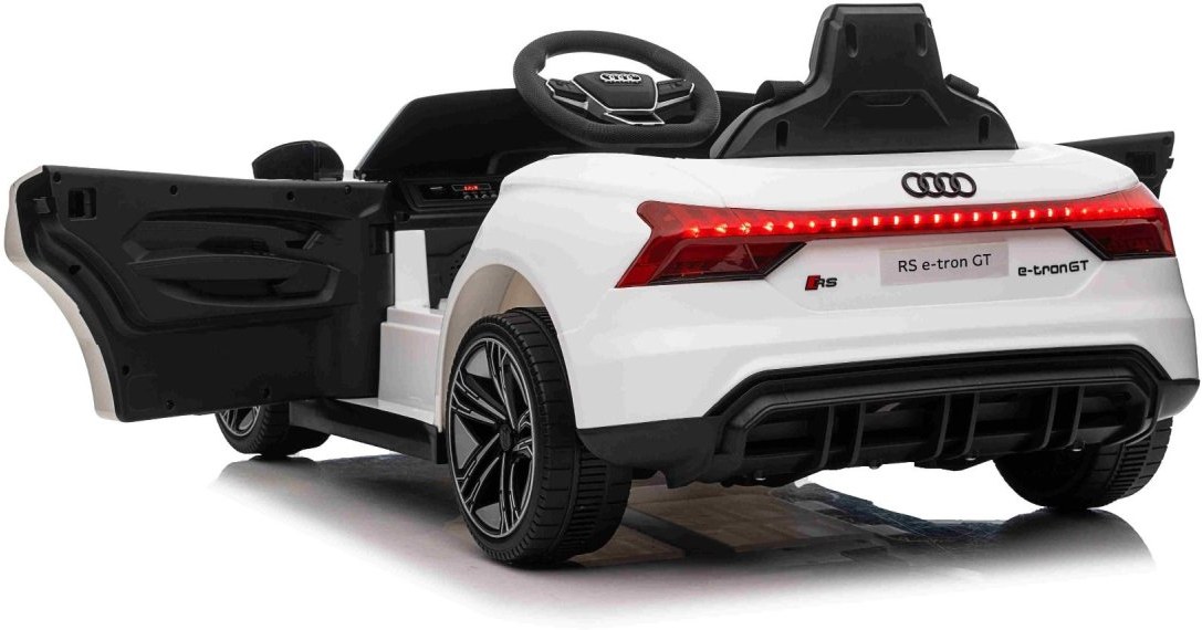 Audi RS e-tron GT: Sila, štýl a technológie v jednom – Tento elektrický model je vozidlom, ktoré spája futuristický dizajn s vysokým výkonom a modernými technológiami. S realistickým vzhľadom a vysokokvalitným spracovaním je ideálnym a vkusným vozidlom pre deti, ktoré si chcú užiť jazdu v športovom a zároveň bezpečnom autíčku. Vybavené je pokročilými funkciami ako MP3 prehrávač s USB/AUX vstupom, ktorý umožňuje prehrávanie hudby aj cez multifunkčný volant. Súčasťou výbavy sú aj predné a zadné LED svetlá a ukazovateľ stavu kapacity batérie, ktorý informuje o zostávajúcej energii.Multifunkčný volant