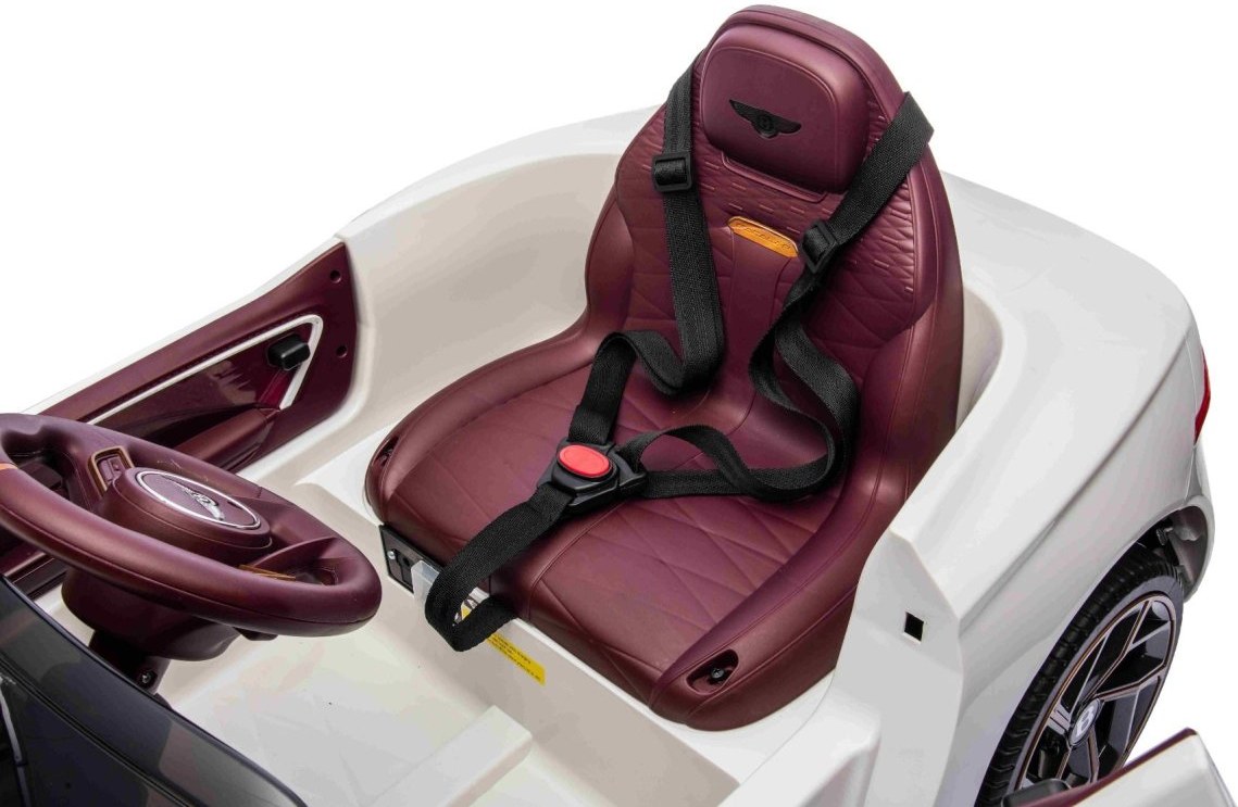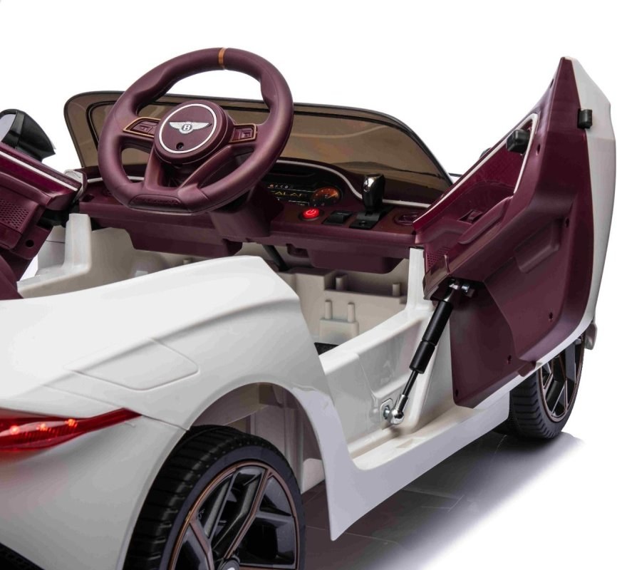 Najnovší model od Bentley pre deti spája luxusný vzhľad a moderné technológie v jednom. Precízne spracovaný dizajn dopĺňajú najnovšie funkcie ako MP3 prehrávač s USB/AUX vstupom, pričom hlasitosť všetkých zvukových efektov sa jednoducho ovláda priamo na prehrávači. Samozrejmosťou je aj prehrávanie hudby, predné LED osvetlenie a ukazovateľ stavu kapacity batérie, ktorý informuje o zostávajúcej kapacite vo voltoch.Multifunkčný volant - S tlačidlami na ovládanie klaksónu a prepínanie hudby.