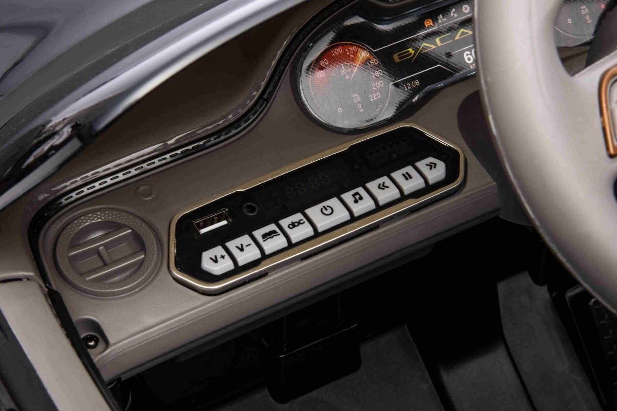 Najnovší model od Bentley pre deti spája luxusný vzhľad a moderné technológie v jednom. Precízne spracovaný dizajn dopĺňajú najnovšie funkcie ako MP3 prehrávač s USB/AUX vstupom, pričom hlasitosť všetkých zvukových efektov sa jednoducho ovláda priamo na prehrávači. Samozrejmosťou je aj prehrávanie hudby, predné LED osvetlenie a ukazovateľ stavu kapacity batérie, ktorý informuje o zostávajúcej kapacite vo voltoch.Multifunkčný volant - S tlačidlami na ovládanie klaksónu a prepínanie hudby.