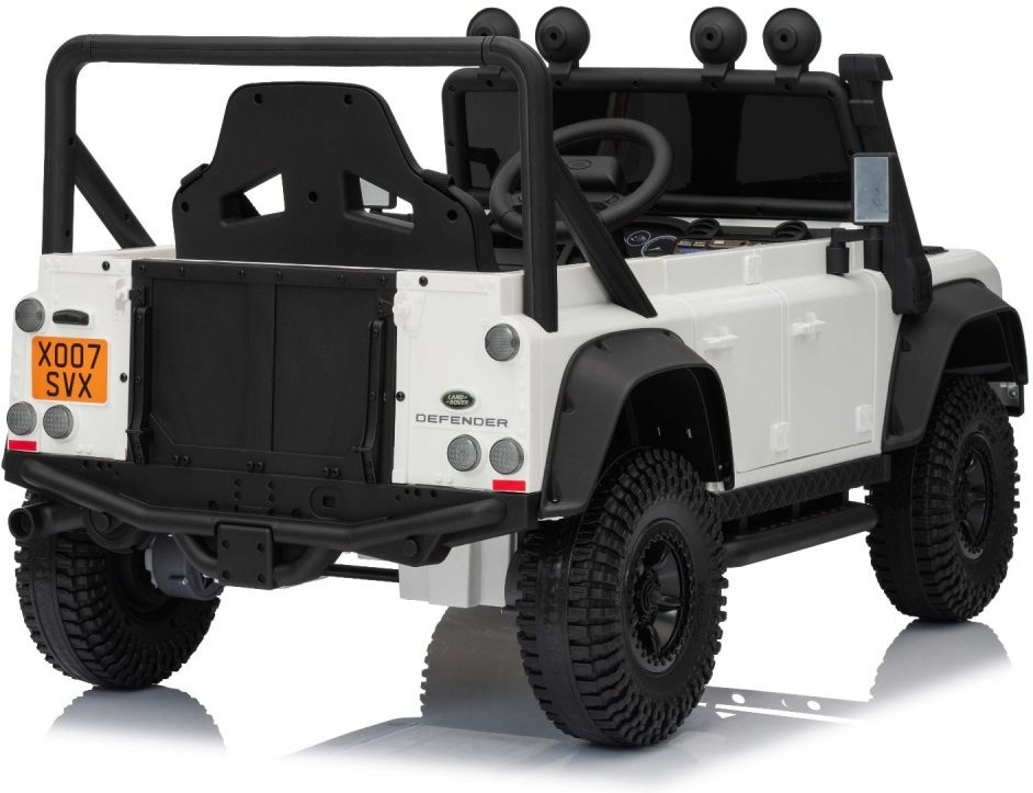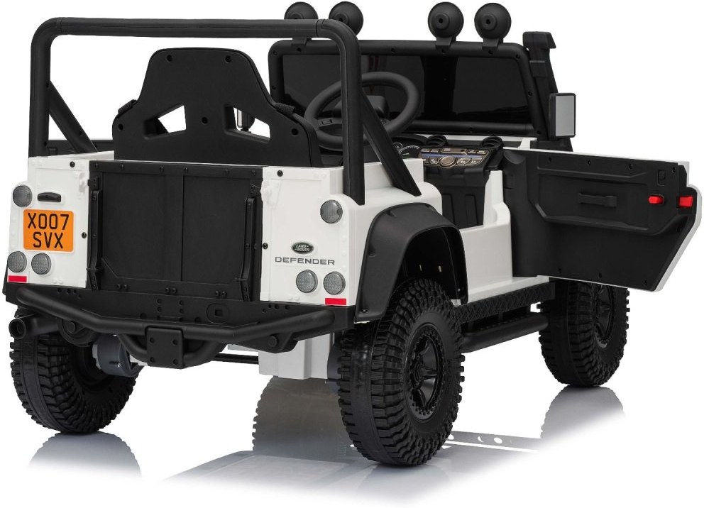 Elektrické SUV Land Rover Defender 110 SVX Concept pre deti prináša autentický dizajn a výkonnú jazdu s pohonom 4X4. Model verne zobrazuje vzhľad originálneho Defendera, pričom ponúka moderné technológie, ako je MP3 prehrávač s USB/AUX/Bluetooth vstupom. Pre zábavu a pohodlie sú k dispozícii aj LED svetlomety a indikátor stavu batérie na multimediálnom paneli.Model Land Rover Defender 110 SVX Concept je autentickou zmenšenou verziou originálu s dôrazom na realistický vzhľad a detailné spracovanie. Toto autíčko je vybavené 2,4 GHz diaľkovým ovládaním novej generácie s osvetleným štartovacím spínačom. Bezpečnosť zabezpečuje núdzová brzda na ovládači, ktorá okamžite deaktivuje všetky funkcie a umožní rodičovi plnú kontrolu nad jazdou. Nechýba ani bezpečnostný pás, ktorý zabezpečí stabilitu dieťaťa pri jazde.