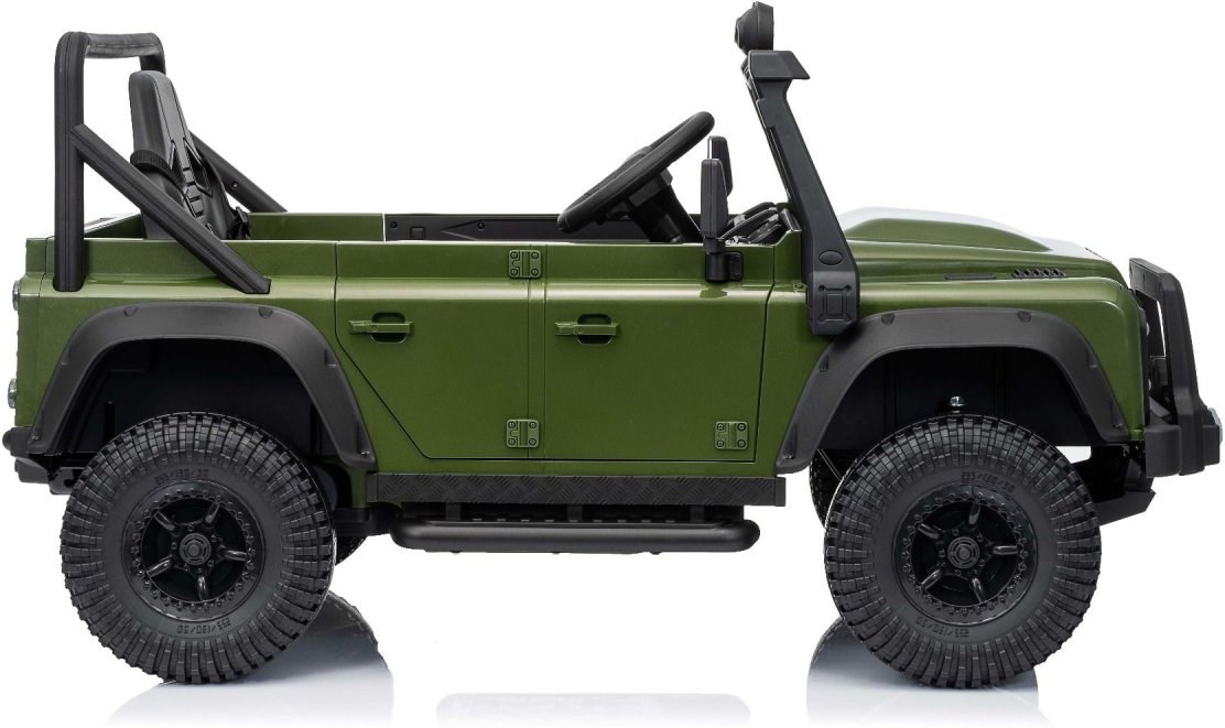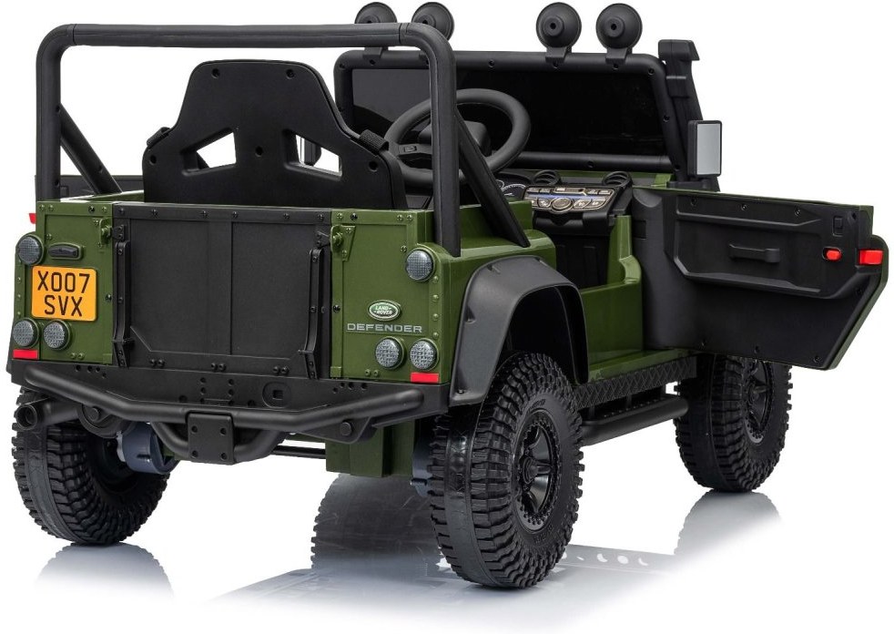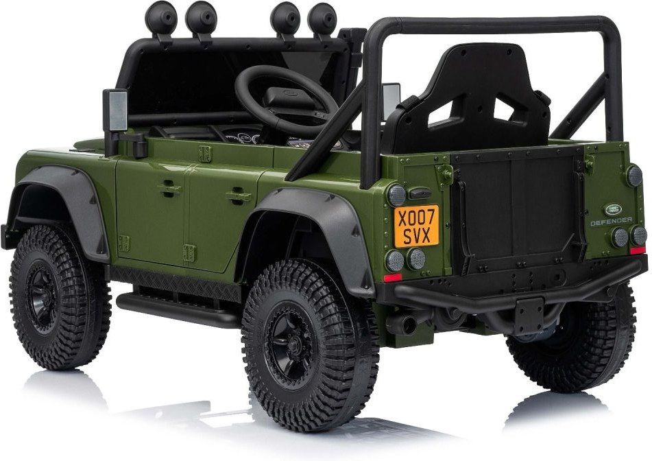 Elektrické SUV Land Rover Defender 110 SVX Concept pre deti prináša autentický dizajn a výkonnú jazdu s pohonom 4X4. Model verne zobrazuje vzhľad originálneho Defendera, pričom ponúka moderné technológie, ako je MP3 prehrávač s USB/AUX/Bluetooth vstupom. Pre zábavu a pohodlie sú k dispozícii aj LED svetlomety a indikátor stavu batérie na multimediálnom paneli.Model Land Rover Defender 110 SVX Concept je autentickou zmenšenou verziou originálu s dôrazom na realistický vzhľad a detailné spracovanie. Toto autíčko je vybavené 2,4 GHz diaľkovým ovládaním novej generácie s osvetleným štartovacím spínačom. Bezpečnosť zabezpečuje núdzová brzda na ovládači, ktorá okamžite deaktivuje všetky funkcie a umožní rodičovi plnú kontrolu nad jazdou. Nechýba ani bezpečnostný pás, ktorý zabezpečí stabilitu dieťaťa pri jazde.