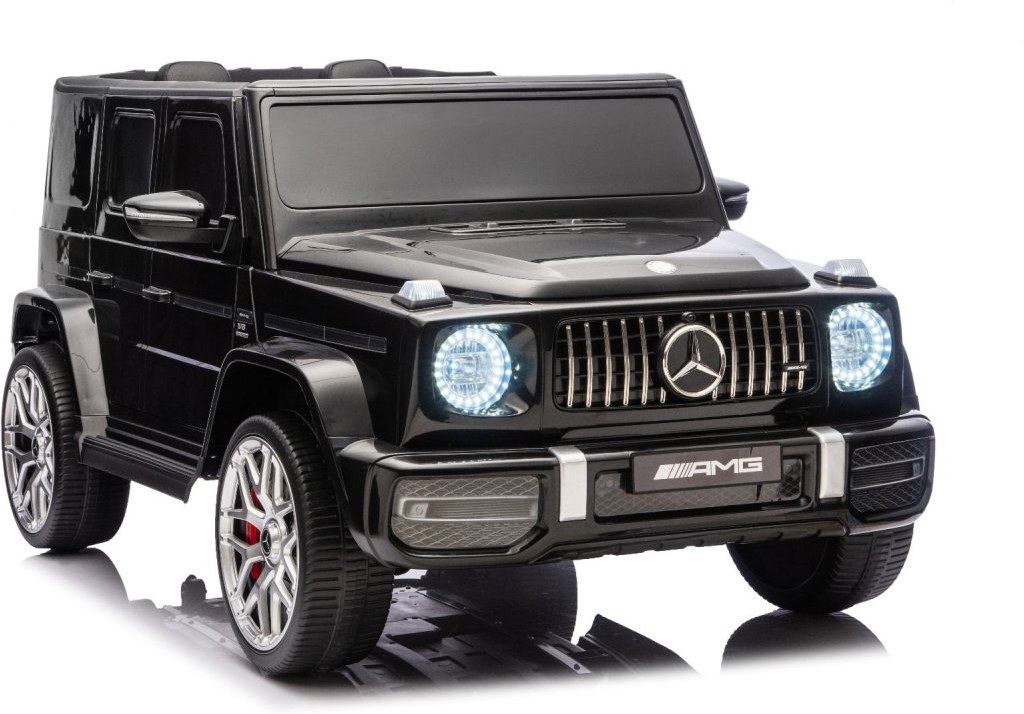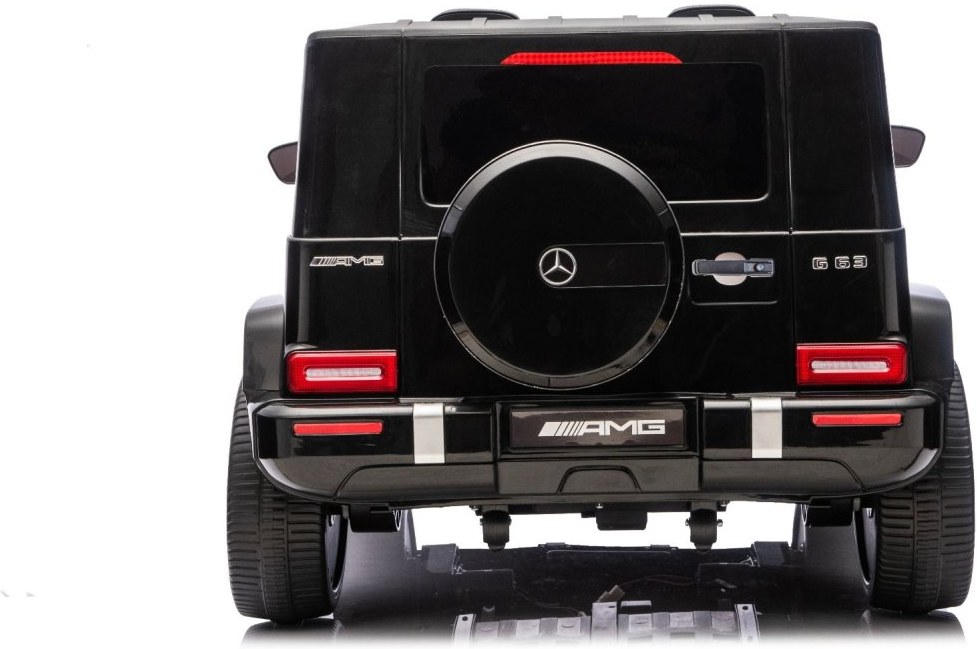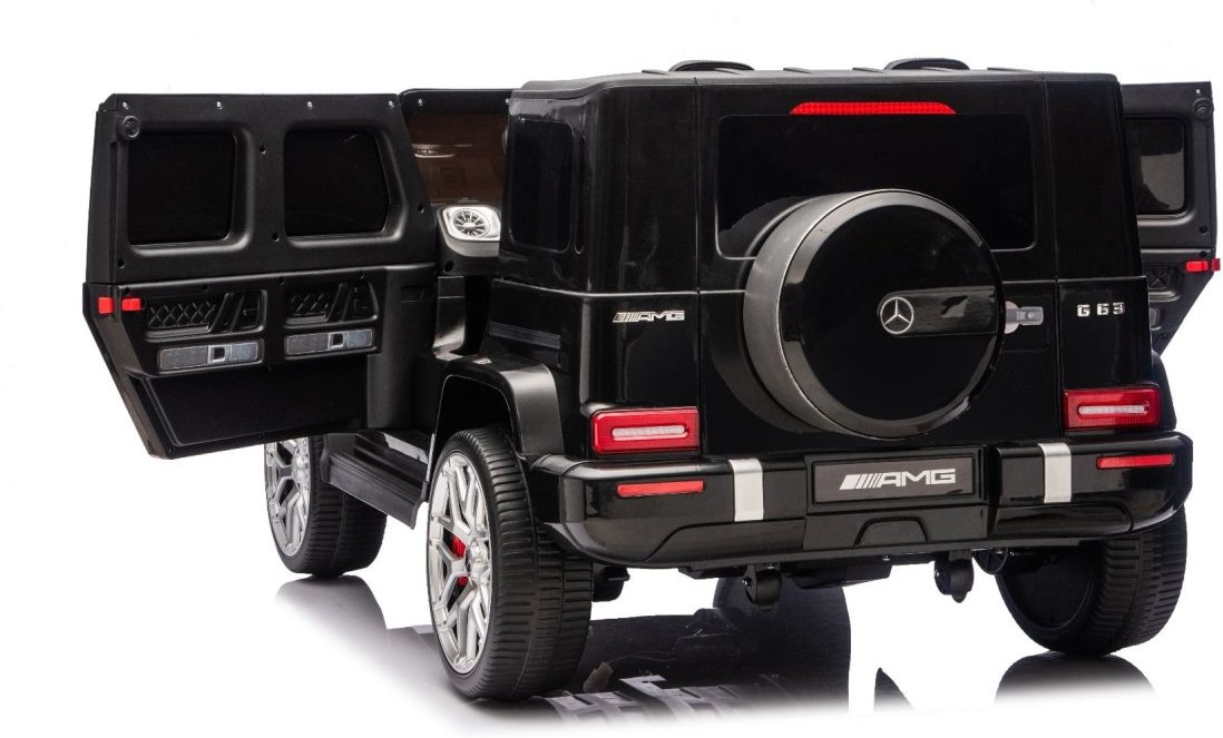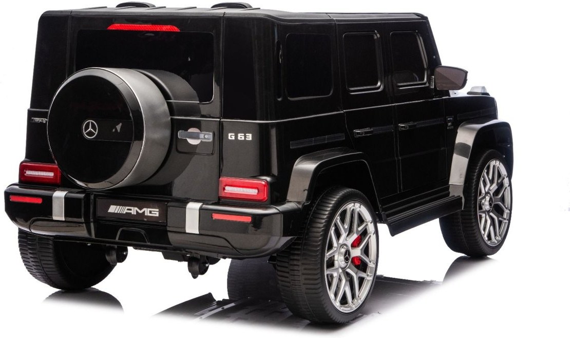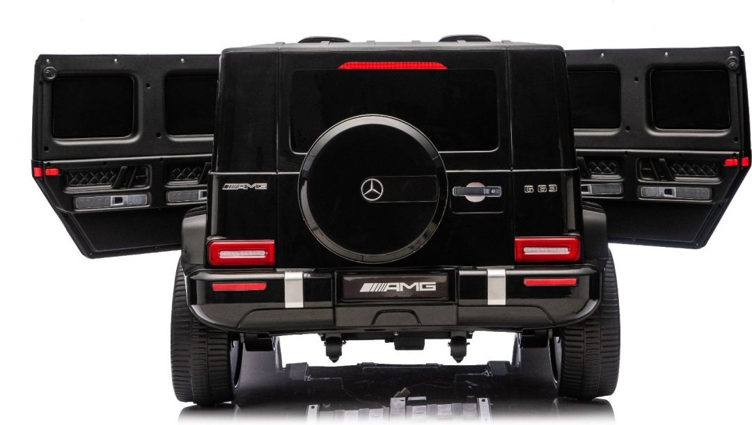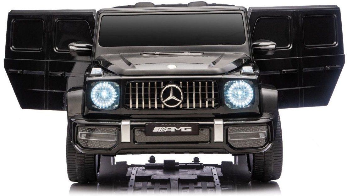 Deti si môžu užívať jazdu v ikonickom luxusnom elektrickom aute Mercedes G63 AMG, ktoré kombinuje elegantný dizajn a spoľahlivý výkon. Vozidlo je vybavené MP3 prehrávačom s USB/AUX vstupom a Bluetooth pripojením na prehrávanie vlastnej hudby, multifunkčným volantom a komfortnými koženkovými sedadlami, čo z neho robí ideálne auto aj pre dvoch pasažierov.Pohon zabezpečujú štyri 50W motory v kombinácii s lítiovou batériou, čo znamená lepší výkon, dlhšiu výdrž a menšiu hmotnosť. Auto disponuje odpružením kolies, LED svetlami pre jazdu za šera, bezpečnostným pásom a otváracími dverami pre realistický zážitok z jazdy.
