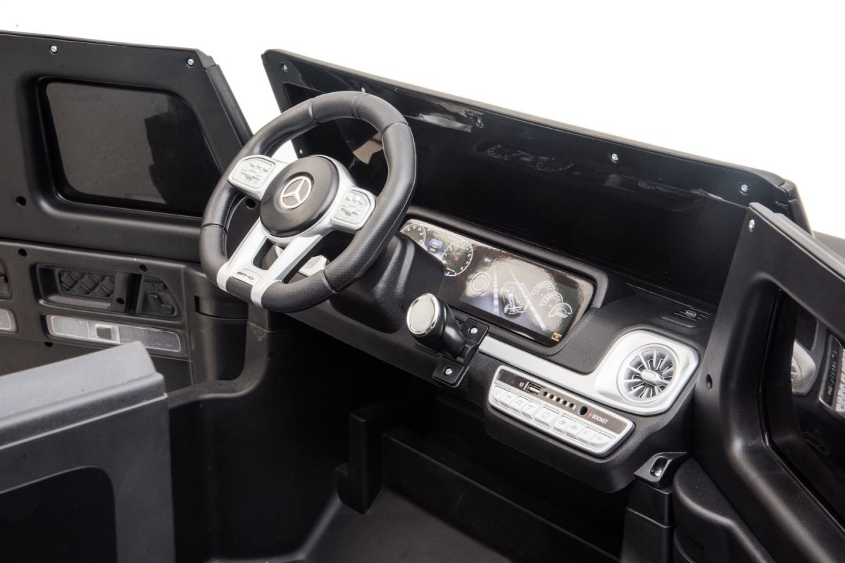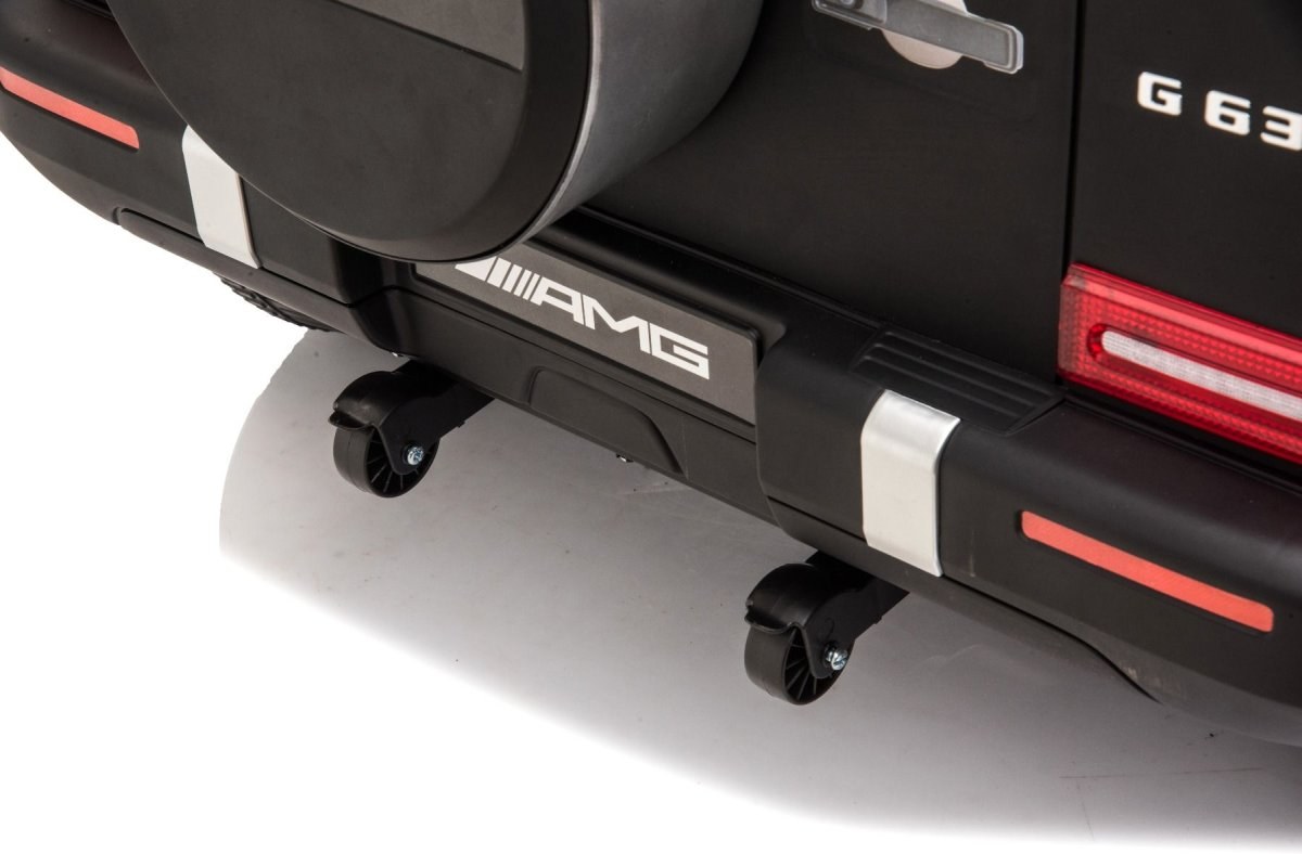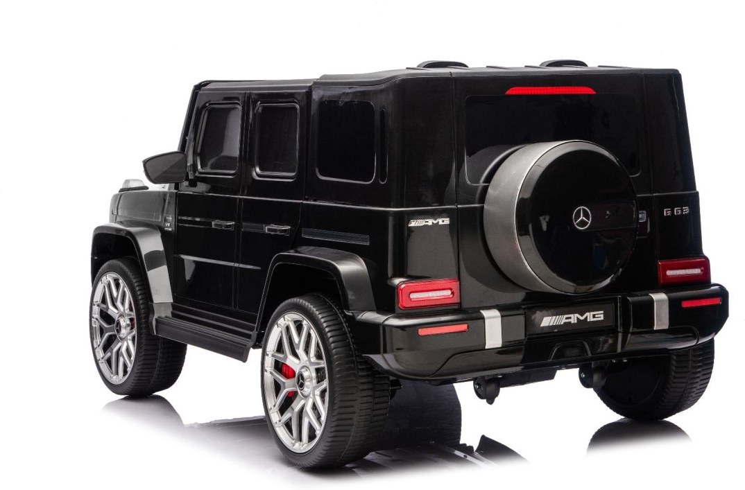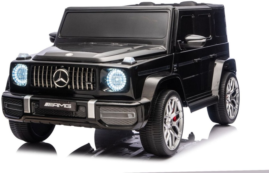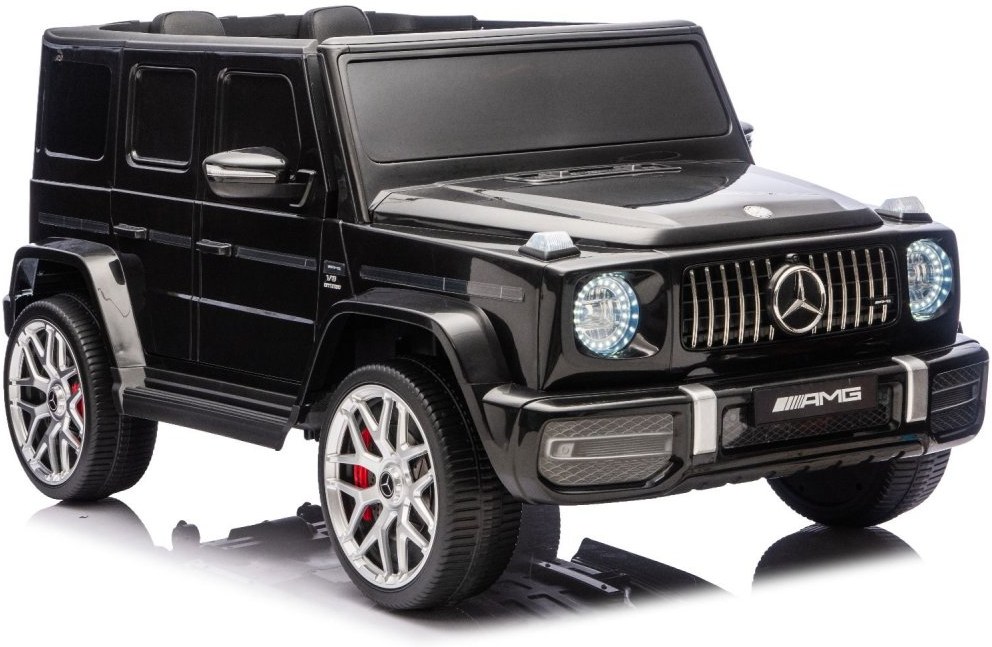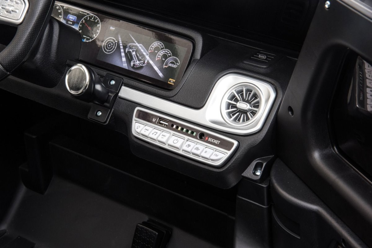 Deti si môžu užívať jazdu v ikonickom luxusnom elektrickom aute Mercedes G63 AMG, ktoré kombinuje elegantný dizajn a spoľahlivý výkon. Vozidlo je vybavené MP3 prehrávačom s USB/AUX vstupom a Bluetooth pripojením na prehrávanie vlastnej hudby, multifunkčným volantom a komfortnými koženkovými sedadlami, čo z neho robí ideálne auto aj pre dvoch pasažierov.Pohon zabezpečujú štyri 50W motory v kombinácii s lítiovou batériou, čo znamená lepší výkon, dlhšiu výdrž a menšiu hmotnosť. Auto disponuje odpružením kolies, LED svetlami pre jazdu za šera, bezpečnostným pásom a otváracími dverami pre realistický zážitok z jazdy.