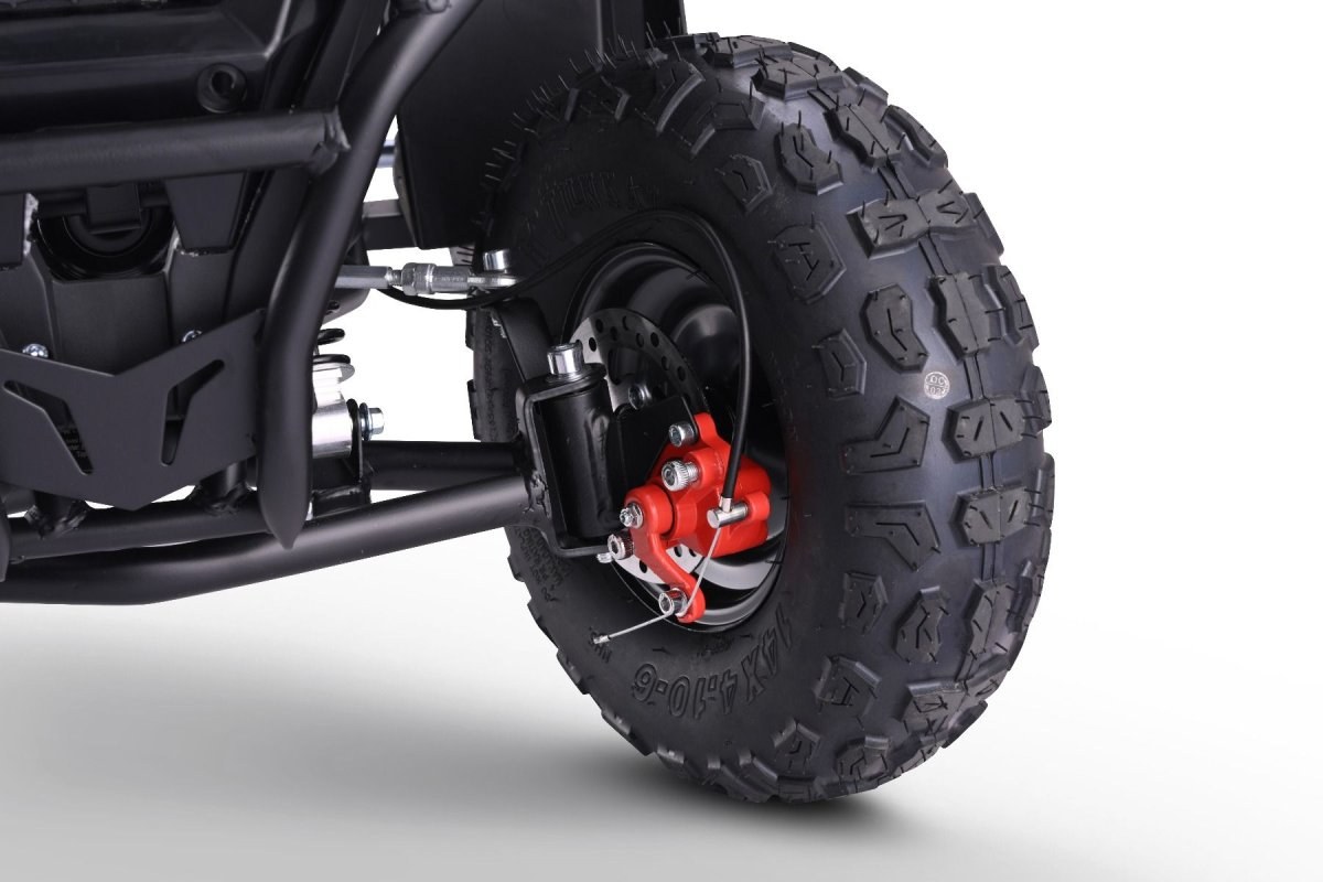 S elektrickým pohonom je tento malý quad veľmi svižný, obratný a ľahko ovládateľný. Vďaka predným a zadným kotúčovým brzdám poskytuje rýchle a efektívne zabrzdenie!6-palcové kolesá poskytujú veľmi dobrú manévrovateľnosť a stabilitu.