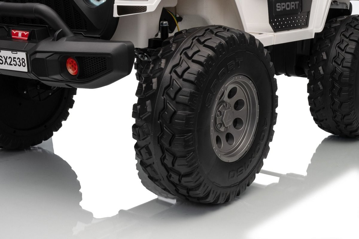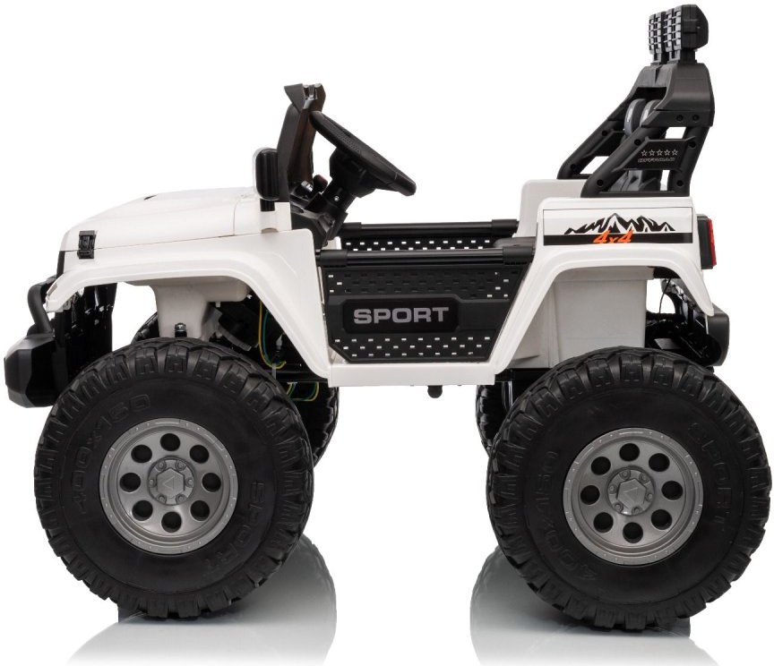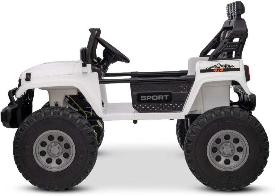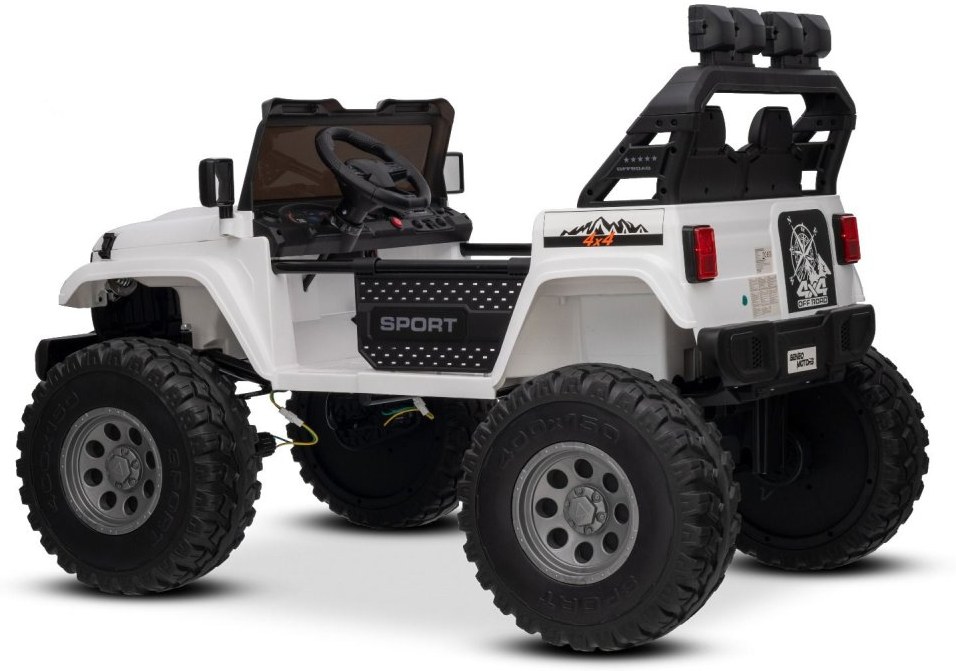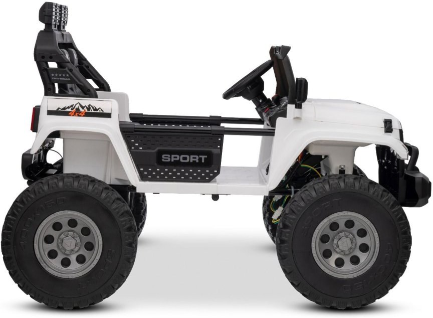 Vysokovýkonné elektrické autíčko Offride s nosnosťou až do 60Kg pre ozajstnú jazdu bez akýchkoľvek obmedzení oproti klasickým autíčkam v teréne. Vďaka vysokému podvozku a obrím kolesám s priemerom 40cm a kovovej konštrukcii je tento model veľmi odolný!Toto elektrické autíčko zaujme nielen svojím dizajnom, ale aj bohatou výbavou. Je vybavené svietiacimi LED svetlami vpredu aj vzadu, ktoré nielen zvyšujú viditeľnosť, ale aj dotvárajú autentický vzhľad skutočného vozidla. Multifunkčný volant obsahuje tlačidlá na efektnú trúbu, detské pesničky aj modernú hudbu. Zabudovaný MP3 prehrávač je vybavený vstupmi USB a AUX a ponúka možnosť ovládania hlasitosti aj prepínania skladieb, vďaka čomu si malý vodič môže jazdu ešte viac užiť.