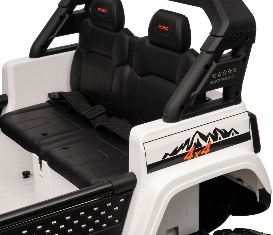V Offride sa nachádzajú štyri výkonné motory s výkonom 55 W, ktoré poháňajú všetky štyri kolesá. Vďaka náhonu 4x4 a možnosti voliť medzi dvoma rýchlosťami vpred a jednou vzad zvládne autíčko aj jazdu v teréne. Vysoký výkon, kvalitné spracovanie a bohatá výbava robia z tohto modelu ideálne vozidlo pre malých dobrodruhov – nielen na rovný povrch, ale aj na offroad jazdu.