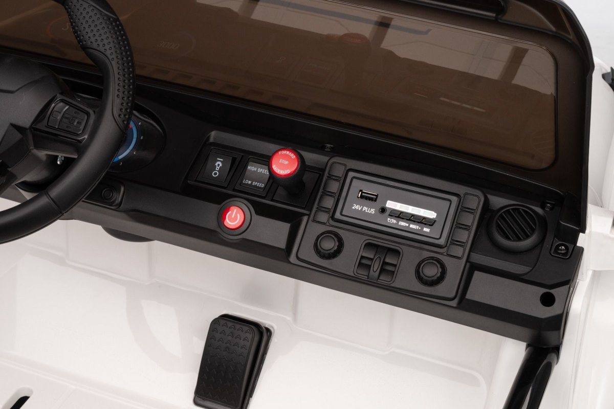 Pohodlie a bezpečnosť zabezpečuje nastaviteľný bezpečnostný pás na sedadle, ktorý udrží dieťa stabilne a bezpečne počas celej jazdy. Autíčko má otváracia kapota, čo zvyšuje zážitok z hry. Na palubnej doske sa nachádza indikátor stavu batérie, ktorý vás včas upozorní, keď bude potrebné dobiť akumulátor.