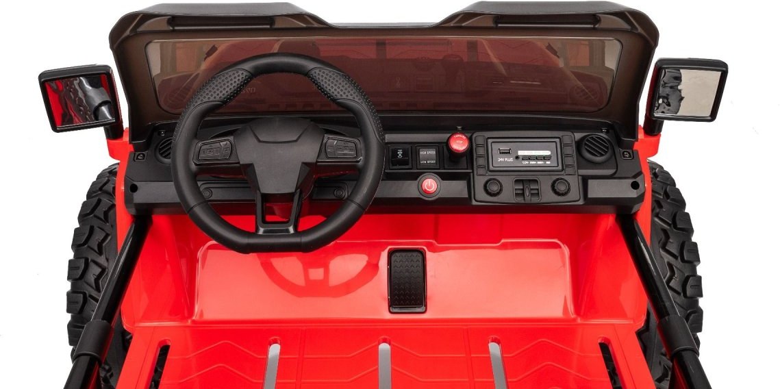 Vysokovýkonné elektrické autíčko Offride s nosnosťou až do 60Kg pre ozajstnú jazdu bez akýchkoľvek obmedzení oproti klasickým autíčkam v teréne. Vďaka vysokému podvozku a obrím kolesám s priemerom 40cm a kovovej konštrukcii je tento model veľmi odolný!Toto elektrické autíčko zaujme nielen svojím dizajnom, ale aj bohatou výbavou. Je vybavené svietiacimi LED svetlami vpredu aj vzadu, ktoré nielen zvyšujú viditeľnosť, ale aj dotvárajú autentický vzhľad skutočného vozidla. Multifunkčný volant obsahuje tlačidlá na efektnú trúbu, detské pesničky aj modernú hudbu. Zabudovaný MP3 prehrávač je vybavený vstupmi USB a AUX a ponúka možnosť ovládania hlasitosti aj prepínania skladieb, vďaka čomu si malý vodič môže jazdu ešte viac užiť.