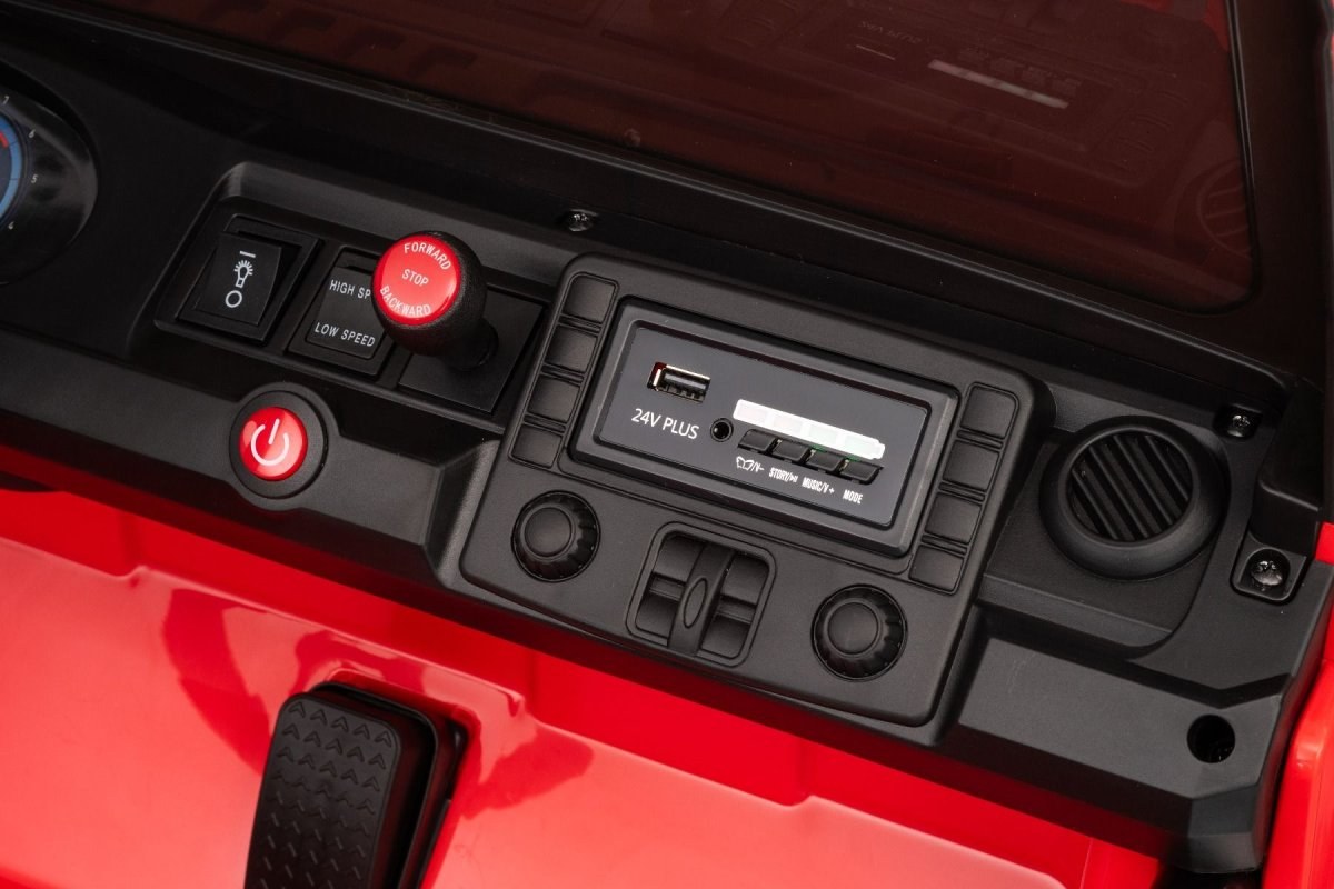 Pohodlie a bezpečnosť zabezpečuje nastaviteľný bezpečnostný pás na sedadle, ktorý udrží dieťa stabilne a bezpečne počas celej jazdy. Autíčko má otváracia kapota, čo zvyšuje zážitok z hry. Na palubnej doske sa nachádza indikátor stavu batérie, ktorý vás včas upozorní, keď bude potrebné dobiť akumulátor.