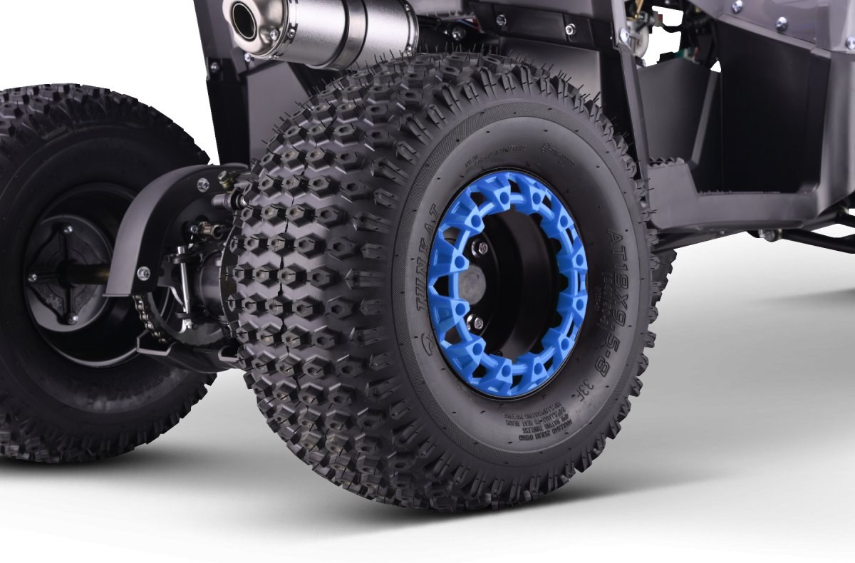 Digitálny tachometer s prehľadným LCD displejom – zobrazuje aktuálnu rýchlosť, prejdenú vzdialenosť a ďalšie dôležité údaje v reálnom čase pre lepšiu kontrolu jazdy.Integrované smerovky – výrazne zvyšujú bezpečnosť počas jazdy a zároveň dodávajú štvorkolke moderný a štýlový vzhľad.