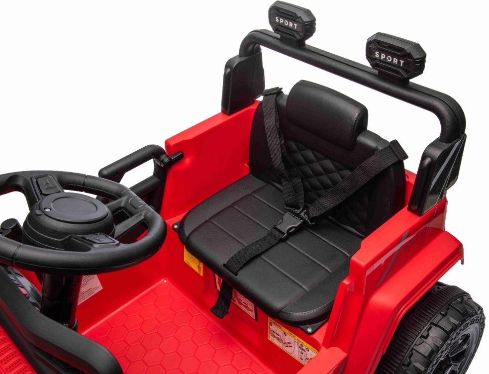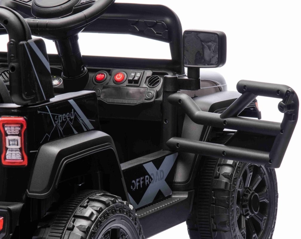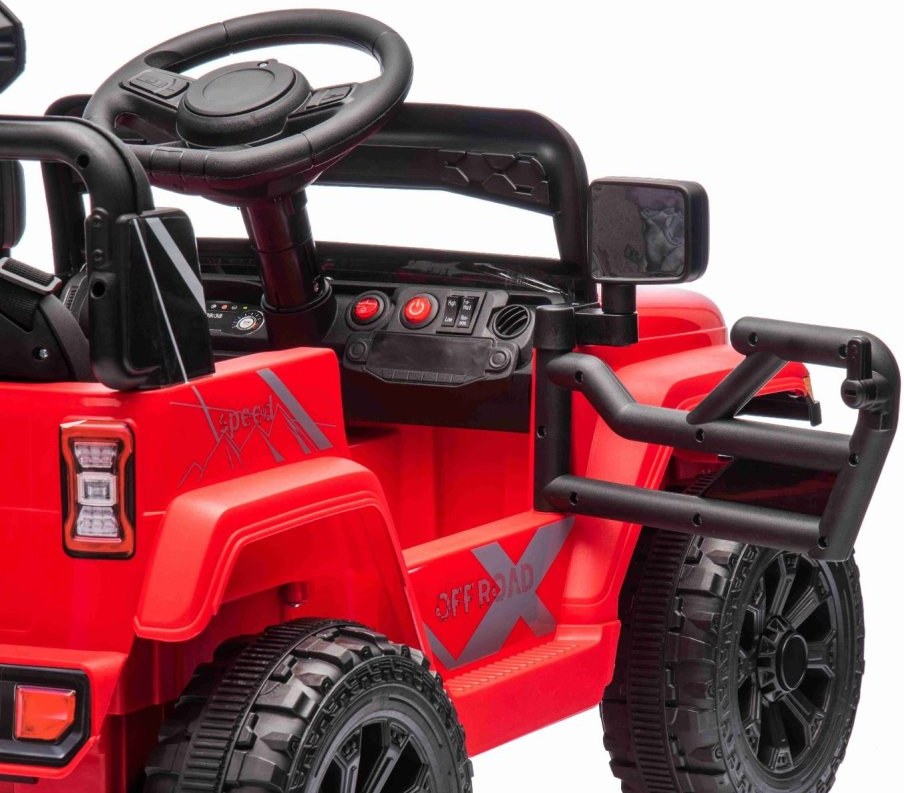 Autíčko OFFROAD je vhodné pre jedno dieťa. Vďaka obrovským kolesám s odpruženými nápravami a širokým sedadlám zabezpečuje pohodlnú jazdu aj v nerovnom teréne.Autíčko je taktiež vybavené svietiacimi svetlami. Inovovaná audio jednotka s modernou muzikou so vstupom USB/AUX. Pre bezpečnosť dieťaťa je na sedačke nastaviteľný bezpečnostný pás.