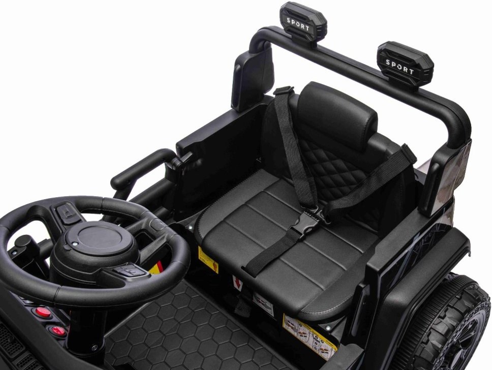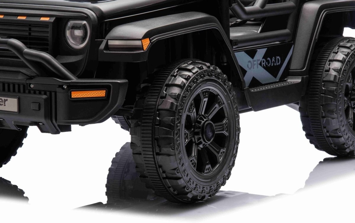 Autíčko OFFROAD je vhodné pre jedno dieťa. Vďaka obrovským kolesám s odpruženými nápravami a širokým sedadlám zabezpečuje pohodlnú jazdu aj v nerovnom teréne. Autíčko je taktiež vybavené svietiacimi svetlami. Inovovaná audio jednotka s modernou muzikou so vstupom USB/AUX. Pre bezpečnosť dieťaťa je na sedačke nastaviteľný bezpečnostný pás.Diaľkové ovládanie - 2,4 GHz diaľkové ovládanie s párovaním na konkrétne autíčko s nadriadenou kontrolou autíčka a možnosťou nastavenia nízkej, strednej, vysokej rýchlosti s núdzovou brzdou.