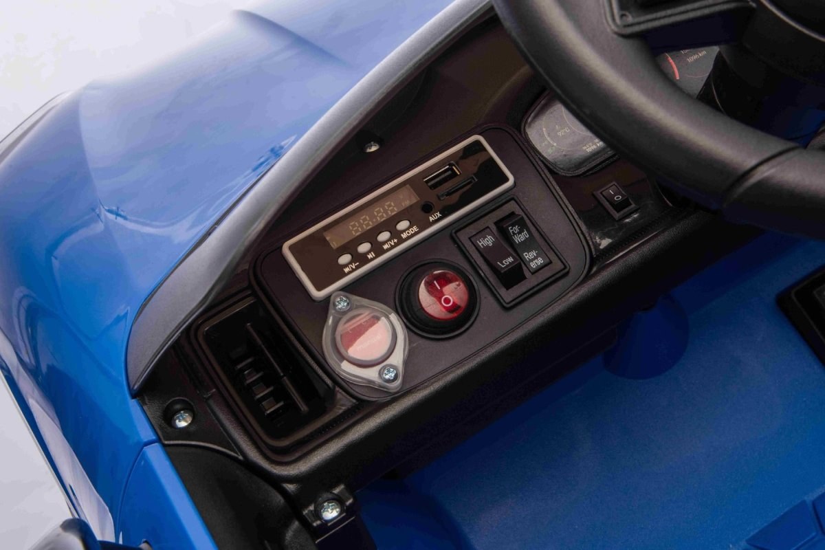 2 rýchlosti dopredu a jedna dozadu. Odpruženie všetkých 4 kolies – zabezpečuje pohodlnú jazdu aj na nerovných povrchoch Auto je poháňané dvoma výkonnými 25 W motormi na zadných kolesách, čo zabezpečuje plynulý pohyb vpred aj vzad. Maximálna rýchlosť sa pohybuje v rozmedzí od 2 do 5 km/h, čo je ideálne pre bezpečnú jazdu aj menších detí. O komfort pri jazde sa stará odpruženie všetkých štyroch kolies, takže dieťa si jazdu užije aj na mierne nerovnom povrchu. Vďaka mäkkému štartu je štartovanie plynulé a bezpečné aj pre menšie deti.Plynulé zrýchlenie