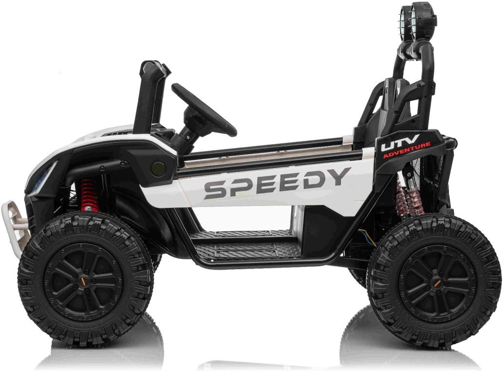 T-REX Ride je ako stvorený pre dobrodružné výpravy mimo asfaltových ciest. Základom jeho skvelých jazdných vlastností v teréne sú veľké kolesá s odpružením, ktoré výborne tlmia nerovnosti a zaisťujú tichú, komfortnú jazdu aj po nerovnom povrchu. Kolesá sú doplnené o masívnu kovovú konštrukciu, ktorá zvyšuje stabilitu a zároveň prispieva k celkovej odolnosti vozidla.O bezpečnosť malého vodiča sa stará integrovaný bezpečnostný pás, ktorý ho udrží pevne na mieste počas celej jazdy, aj pri rýchlejších rozjazdoch či pri jazde po nerovnostiach. Celý model je navrhnutý v športovo-offroad štýle, ktorý nielen dobre vyzerá, ale zároveň podčiarkuje jeho skutočné schopnosti v teréne. T-REX Ride tak ponúka nielen zábavu, ale aj spoľahlivosť a bezpečnosť v každej situácii.