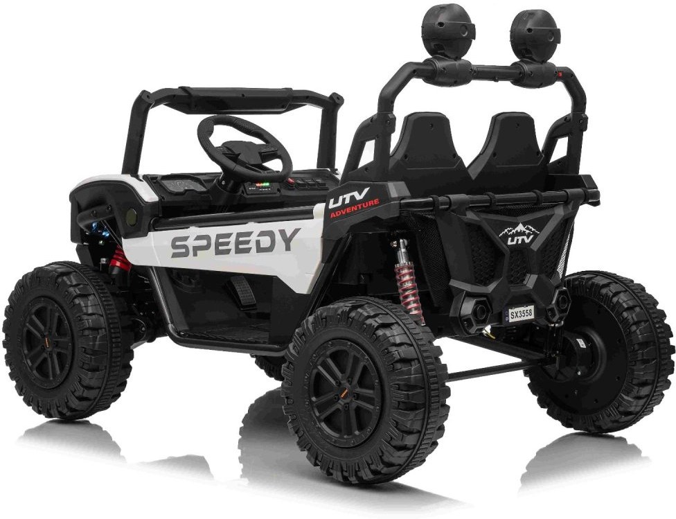 O pohodlie a bezpečnosť sa stará nastaviteľný bezpečnostný pás. Otváracia kapota zvyšuje herný zážitok a na palubnej doske nájdete aj indikátor stavu batérie, ktorý vás upozorní, keď je čas dobiť.