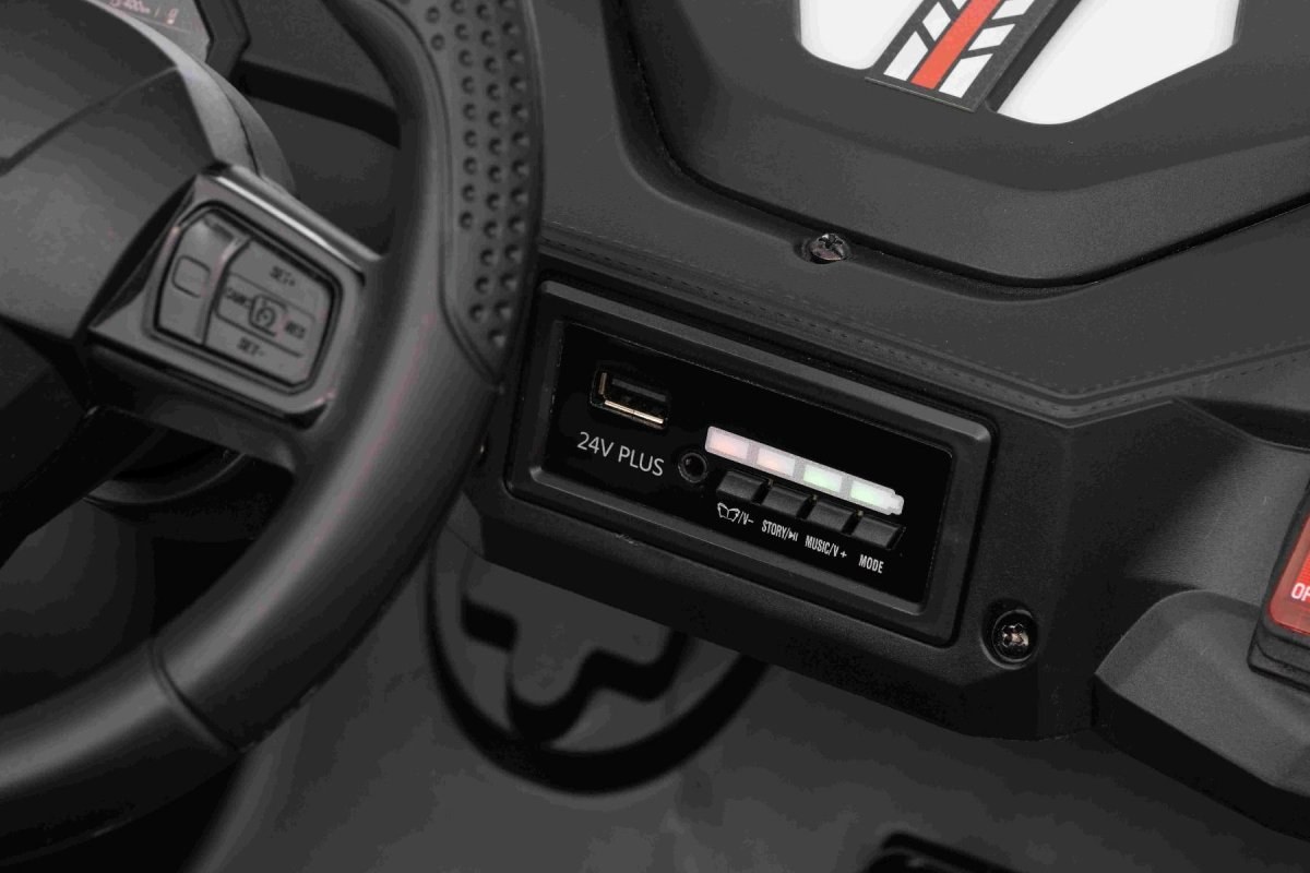 O pohodlie a bezpečnosť sa stará nastaviteľný bezpečnostný pás. Otváracia kapota zvyšuje herný zážitok a na palubnej doske nájdete aj indikátor stavu batérie, ktorý vás upozorní, keď je čas dobiť.