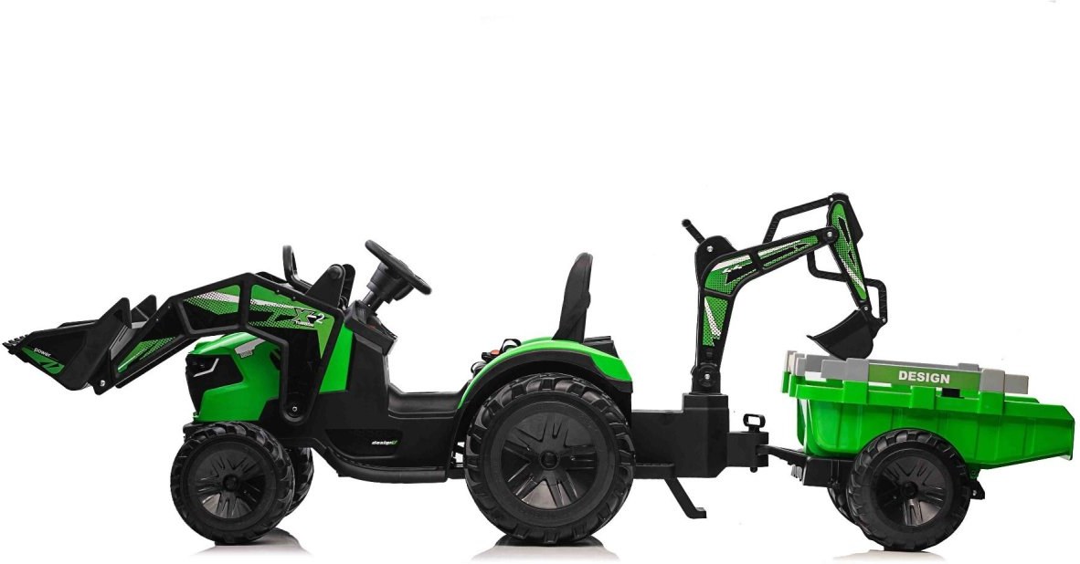 Beneo TOP-WORKER, elektrický traktor s naberačkami a prívesom, 12V, zelený