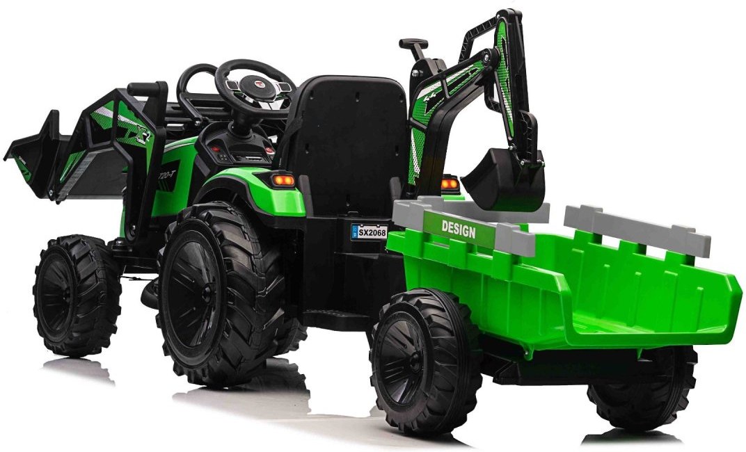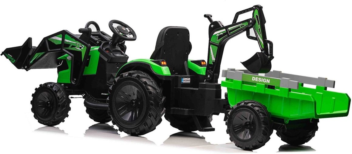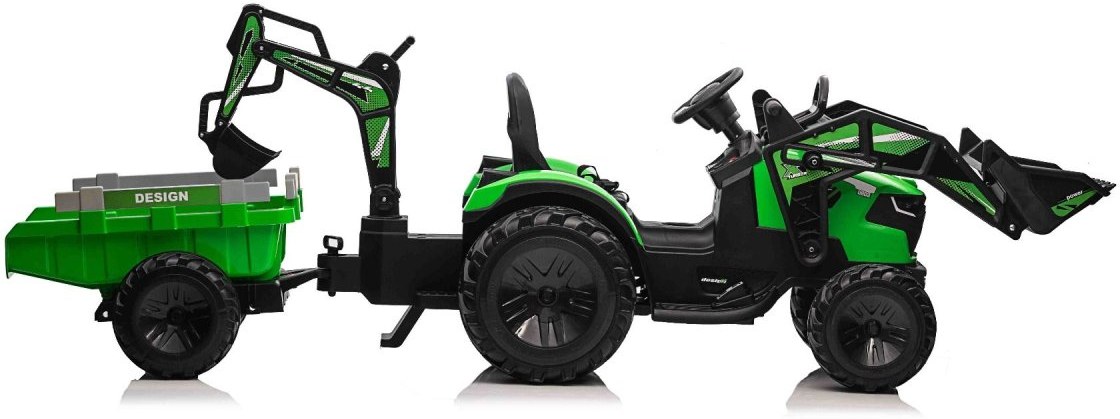Dostaňte sa za volant tohto úplne vynikajúceho Traktoru TOP-WORKER - 2 x 45w motor s Lítiovou batériou, predná aj zadná naberačka/ funkčná ruka pre nakládku. Rýchlosť do 6 km/hod. Doprajte aj svojim deťom potešenie z jazdy. Pre vyšší komfort: mäkké penové kolesá EVA zabezpečujúce plynulý chod bez roztrasenia karosérie.Traktor Top-Worker je jeden z traktorov s najvyššou výbavou nášho sortimentu ktorý obsahuje aj príves s dvoma naberačkami - Predná aj zadná naberačka je k dispozícii.