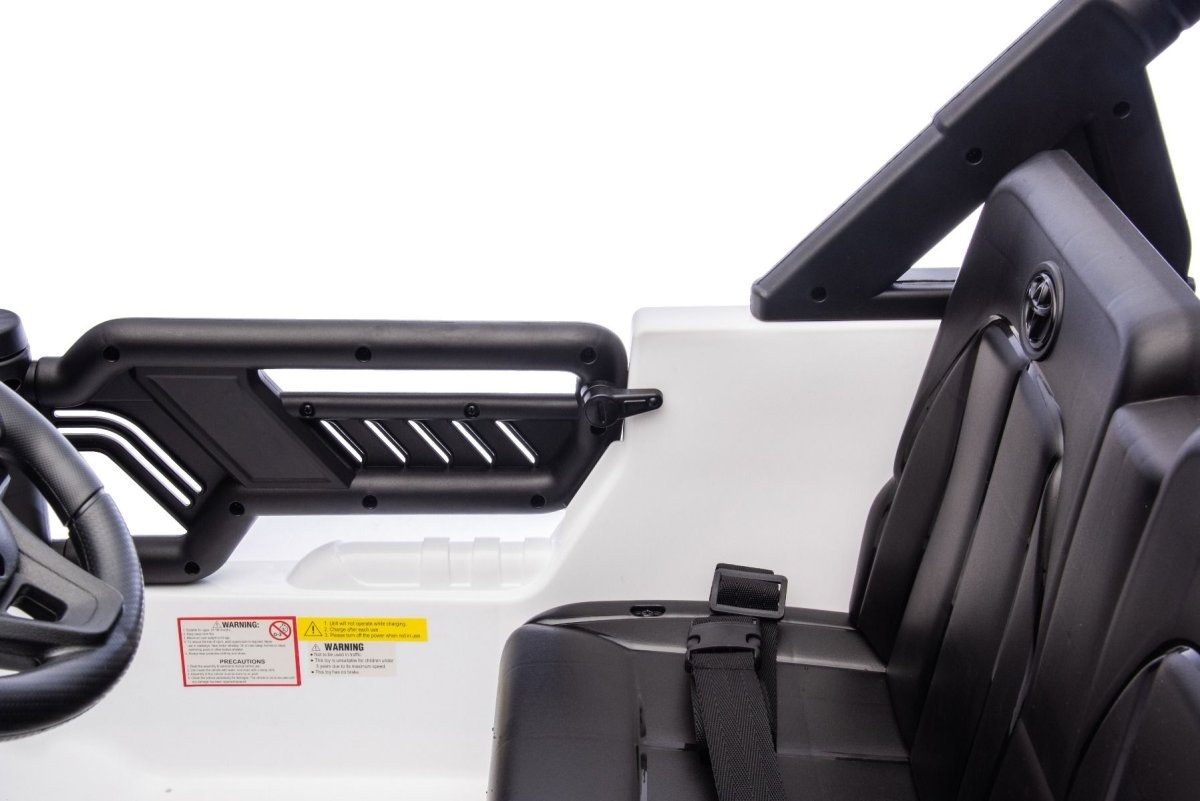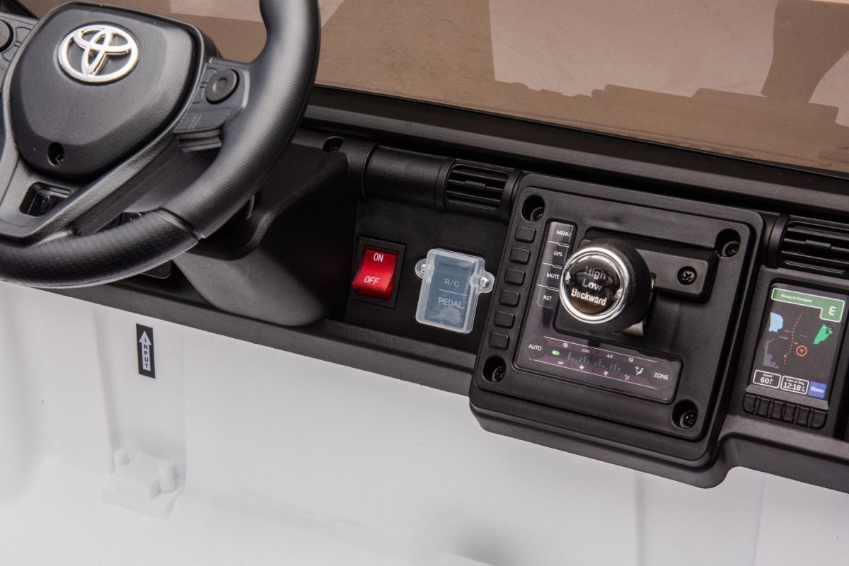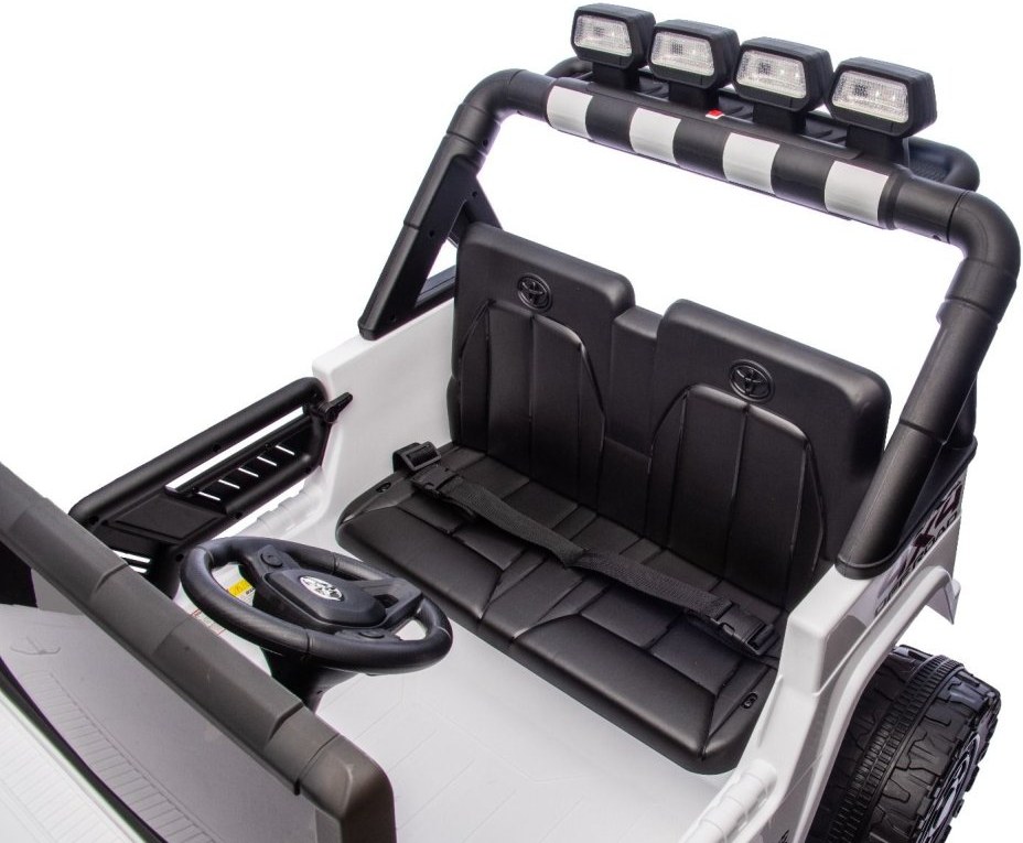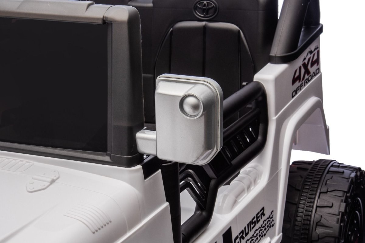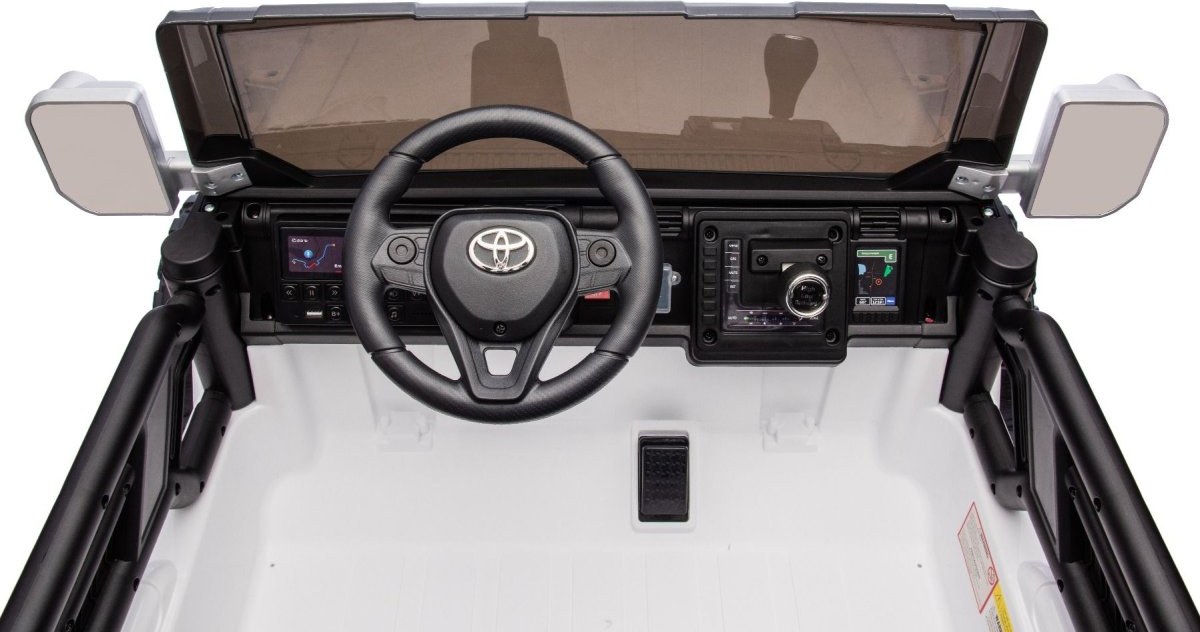 Autíčko Toyota FJ Cruiser XXL je pohodlne vhodné pre dve deti so šírkou sedadiel 58 cm. Vďaka vysokému podvozku s odpruženou zadnou nápravou a dvojsedadlu poskytuje pohodlnú jazdu aj v nerovnom teréne.Autíčko je vybavené svietiacimi svetlami a inovovanou audio jednotkou s modernou hudbou a vstupom USB/AUX a BLUETOOTH pripojením. Pre bezpečnosť dieťaťa je na sedačke nastaviteľný bezpečnostný pás pre dve deti.