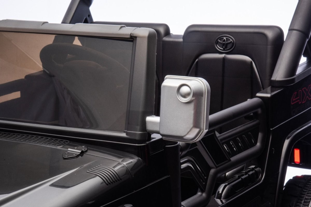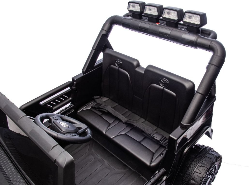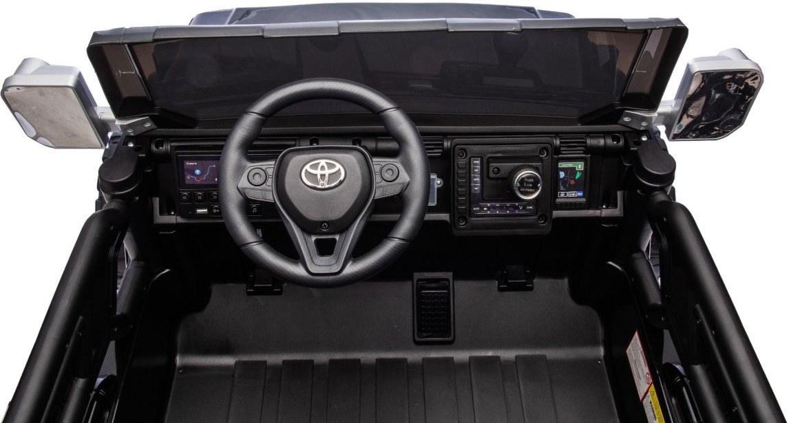 Autíčko Toyota FJ Cruiser XXL je pohodlne vhodné pre dve deti so šírkou sedadiel 58 cm. Vďaka vysokému podvozku s odpruženou zadnou nápravou a dvojsedadlu poskytuje pohodlnú jazdu aj v nerovnom teréne.Autíčko je vybavené svietiacimi svetlami a inovovanou audio jednotkou s modernou hudbou a vstupom USB/AUX a BLUETOOTH pripojením. Pre bezpečnosť dieťaťa je na sedačke nastaviteľný bezpečnostný pás pre dve deti.